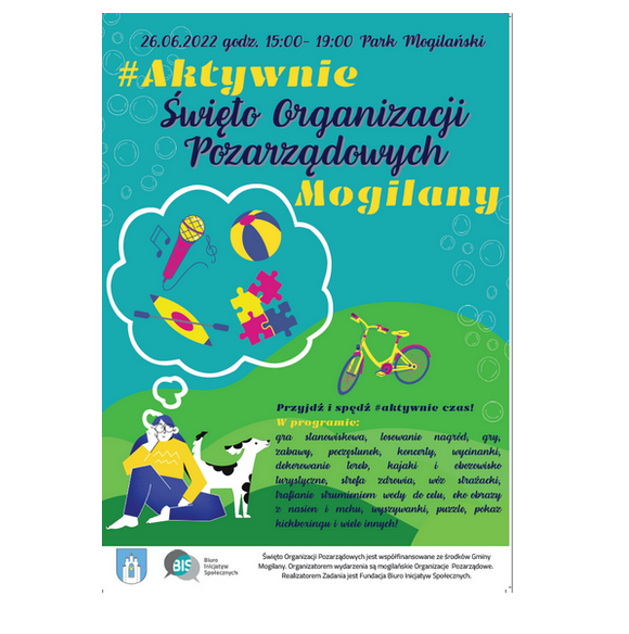 Święto Organizacji Pozarządowych jest współfinansowane ze środków Gminy Mogilany.Organizatorem wydarzenia są mogilańskie Organizacje Pozarządowe. Realizatorem zadania jest Fundacja Biuro Inicjatyw Społecznych.