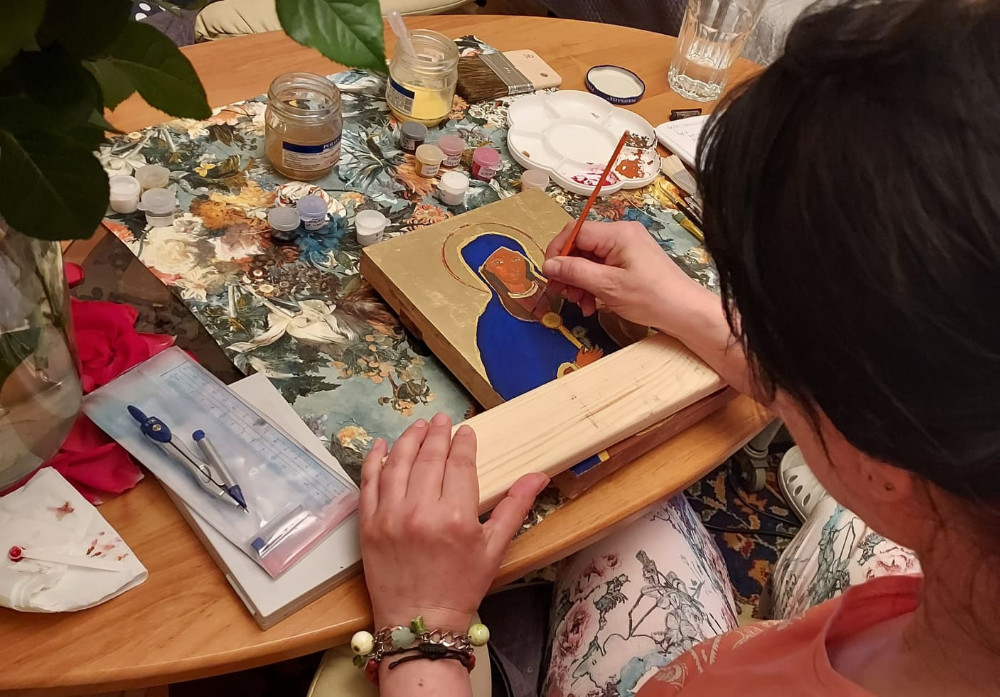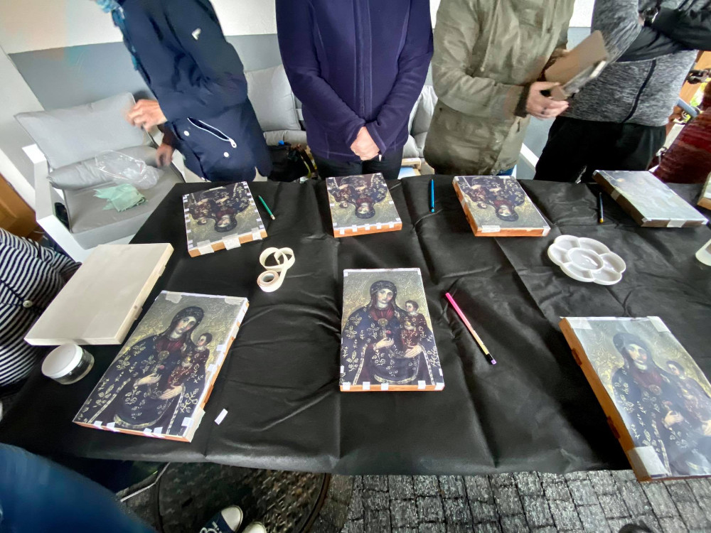 otrzymali materiały do wykonania swojej ikony oraz malowali na