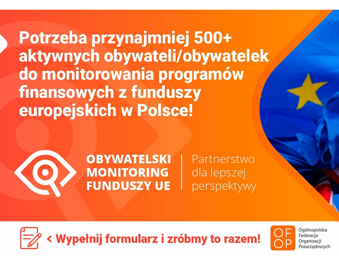 OFOP zachęca do wypełnienia formularza celem analizy możliwości i potencjału organizacji pozarządowych do prac w komitetach monitorujących i współpracy w tym zakresie. Organizacje mogą liczyć na możliwość wymiany doświadczeń, wsparcie specjalistów, udział