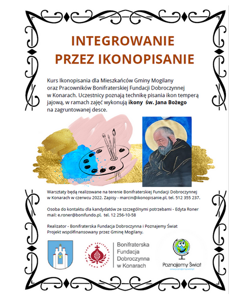Bonifraterska Fundacja Dobroczynna wspólnie z Panem Marcinem Musiałem (ikonopisanie.pl) zaprasza na kurs pisania ikon! Pierwsze zajęcia odbędą się 11 czerwca 2022 r. o g. 8:00 w siedzibie Bonifraterskiej Fundacji Dobroczynnej!