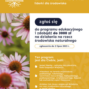 Zakorzenione to program edukacyjny skierowany do sołtysek i członkiń Kół Gospodyń Wiejskich, które mają pomysły na działania na rzecz środowiska w swoich miejscowościach. Założeniem programu jest wspieranie inicjatyw, które angażują lokalną społeczność w podejmowanie przedsięwzięć na rzecz przyrody i środowiska. Nabór na projekty trwa do 2 lipca 2023 roku.