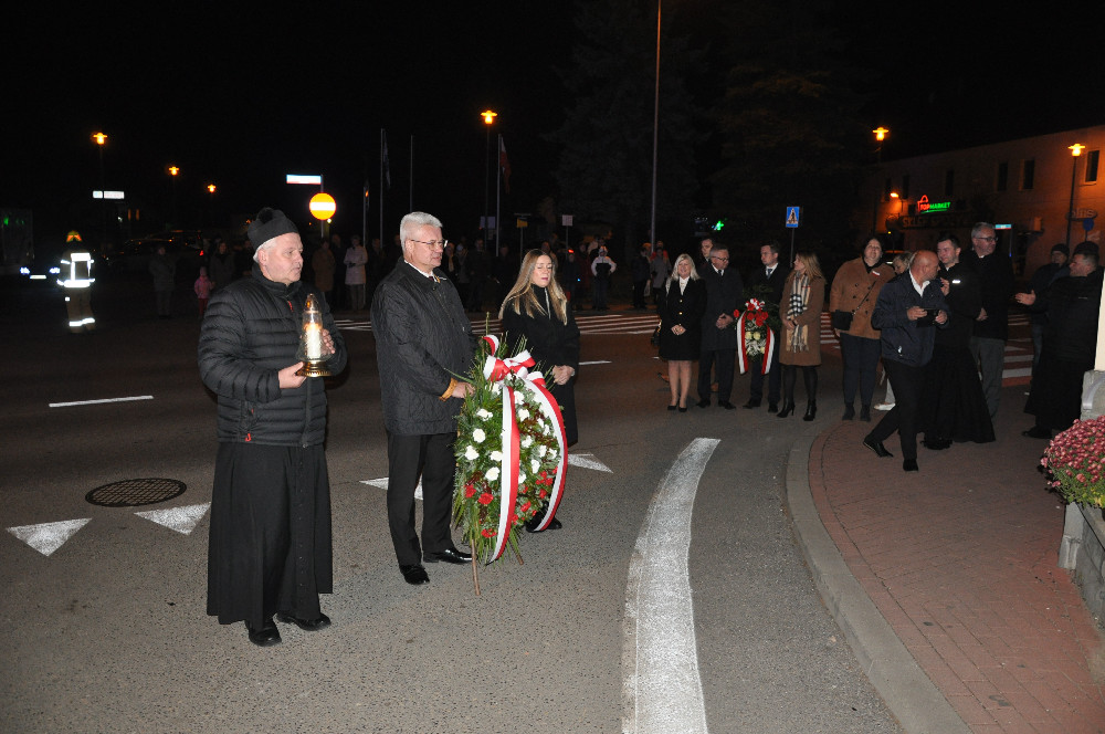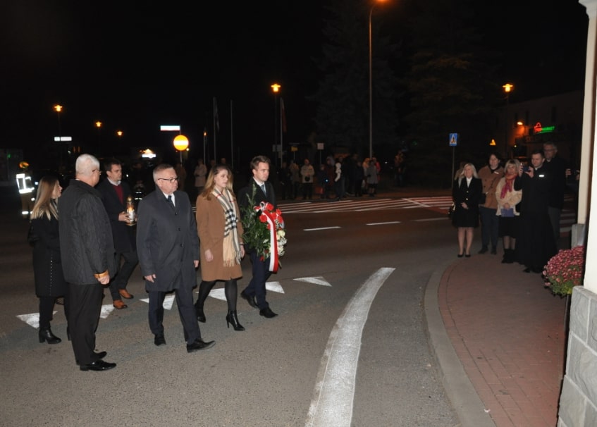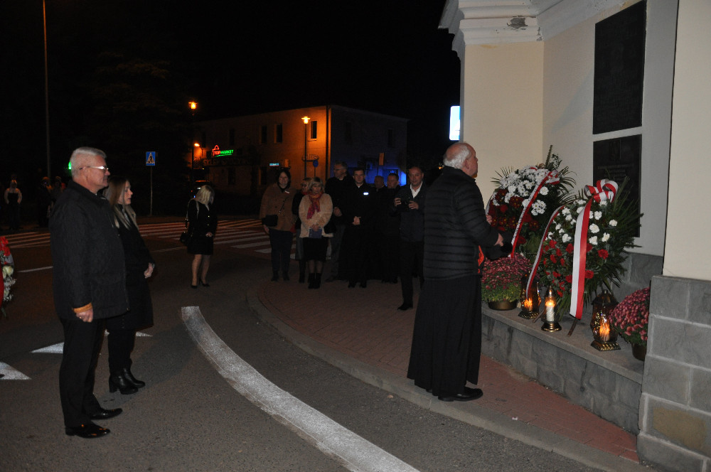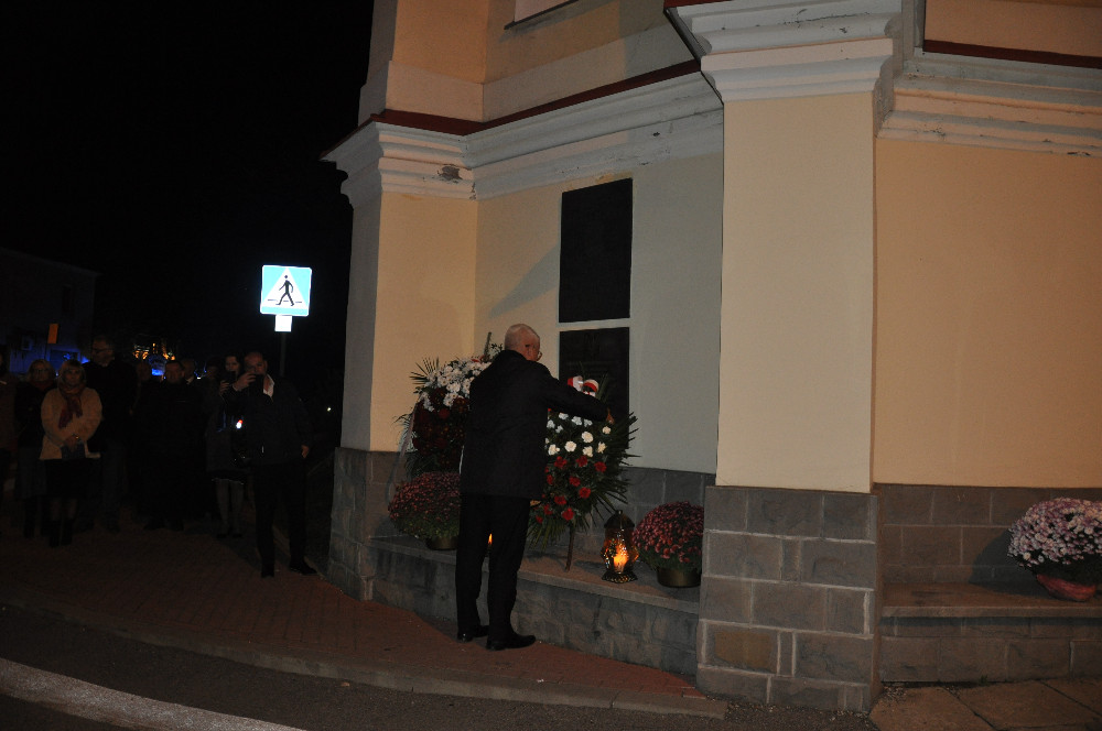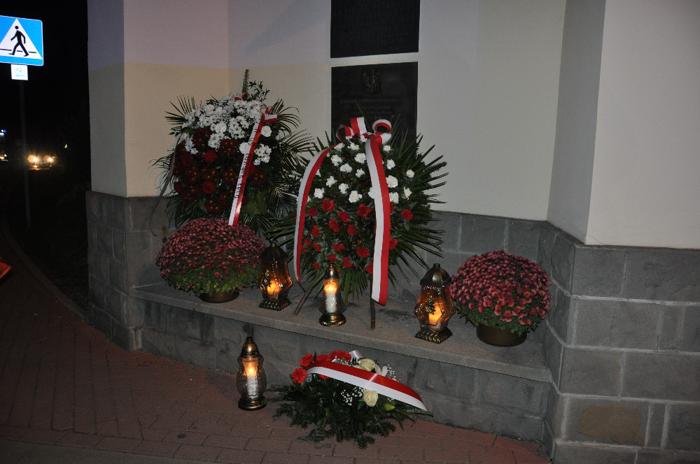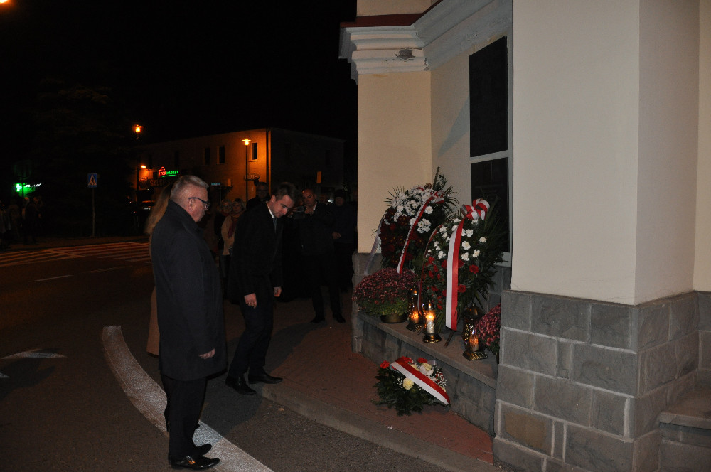 uczestnicy obchodów licznie zgromadzili się pod tablicą pamiątkową