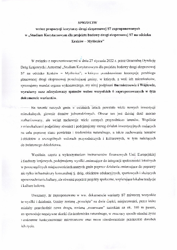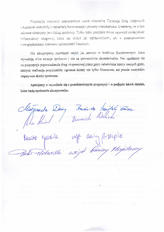 Jednocześnie samorządowcy zaprosili pozostałych wójtów i burmistrzów do wsparcia protestu wobec zaproponowanych przez GDDKiA projektów przebiegu drogi ekspresowej.