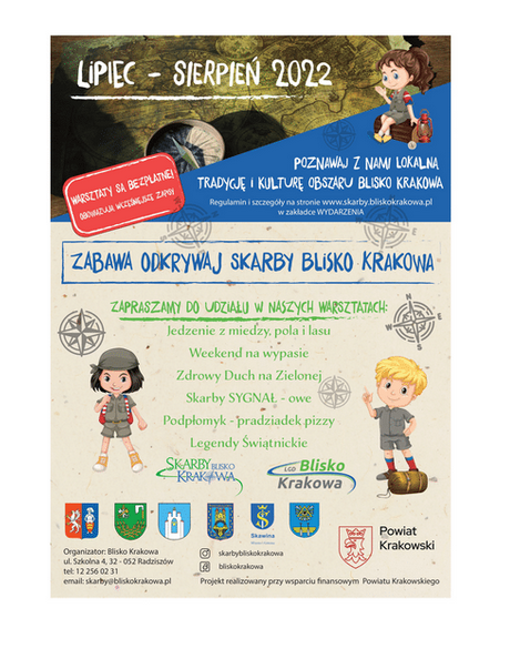 Uwaga: Liczba miejsc jest mocno ograniczona, decyduje kolejność zgłoszeń. Przed wzięciem udziału koniecznie zapoznaj się z Regulaminem Zabawy Odkrywaj Skarby Blisko Krakowa 2022 r.