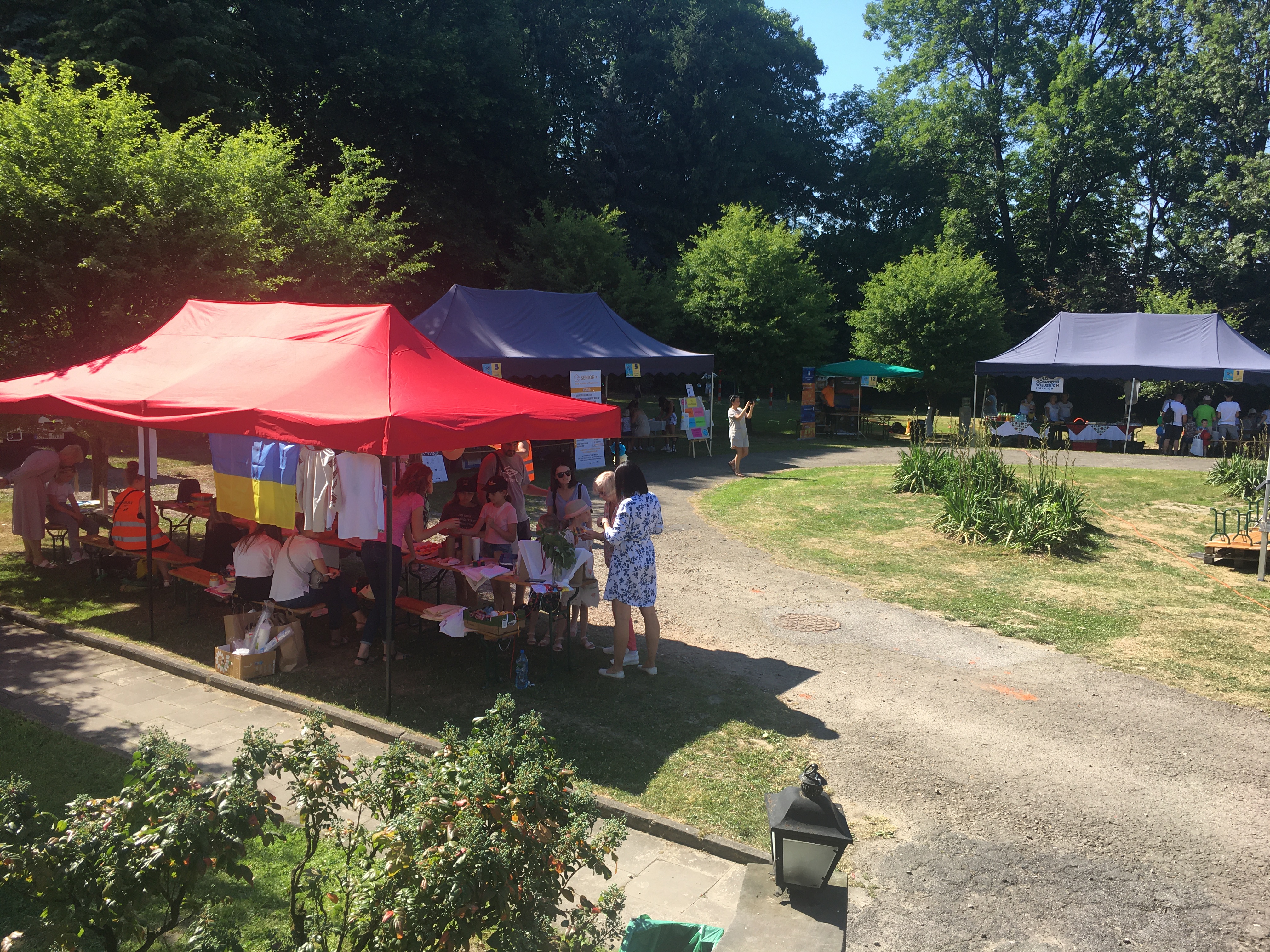 Przygotowano kilkanaście stanowisk. Były krzyżówki, rebusy i quizy, kreatywne prace plastyczne, dekorowanie kubeczków ukraińskimi wzorami, przysmaki m.in. od koła gospodyń wiejskich. Mogliśmy zainspirować się obozowiskiem turystycznym Uczniowskiego Klubu Sportowego Konary, zagrać w leśne gry podwórkowe z grupą nieformalną Razem Aktywnie, skorzystać z przygotowanych przez LKS Mogilany aktywności fizycznych. Pojawiły się straże pożarne z Konar i Włosani, których przygotowane atrakcje wodne cieszyły się dużym zainteresowaniem najmłodszych mieszkańców gminy. Występ Orkiestry Dętej umilił czas zgromadzonym przy scenie, a kameralny występ ukraińskiej wokalistki Sofii Katrin dostarczył wielu wzruszeń.