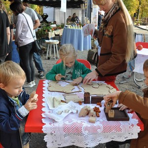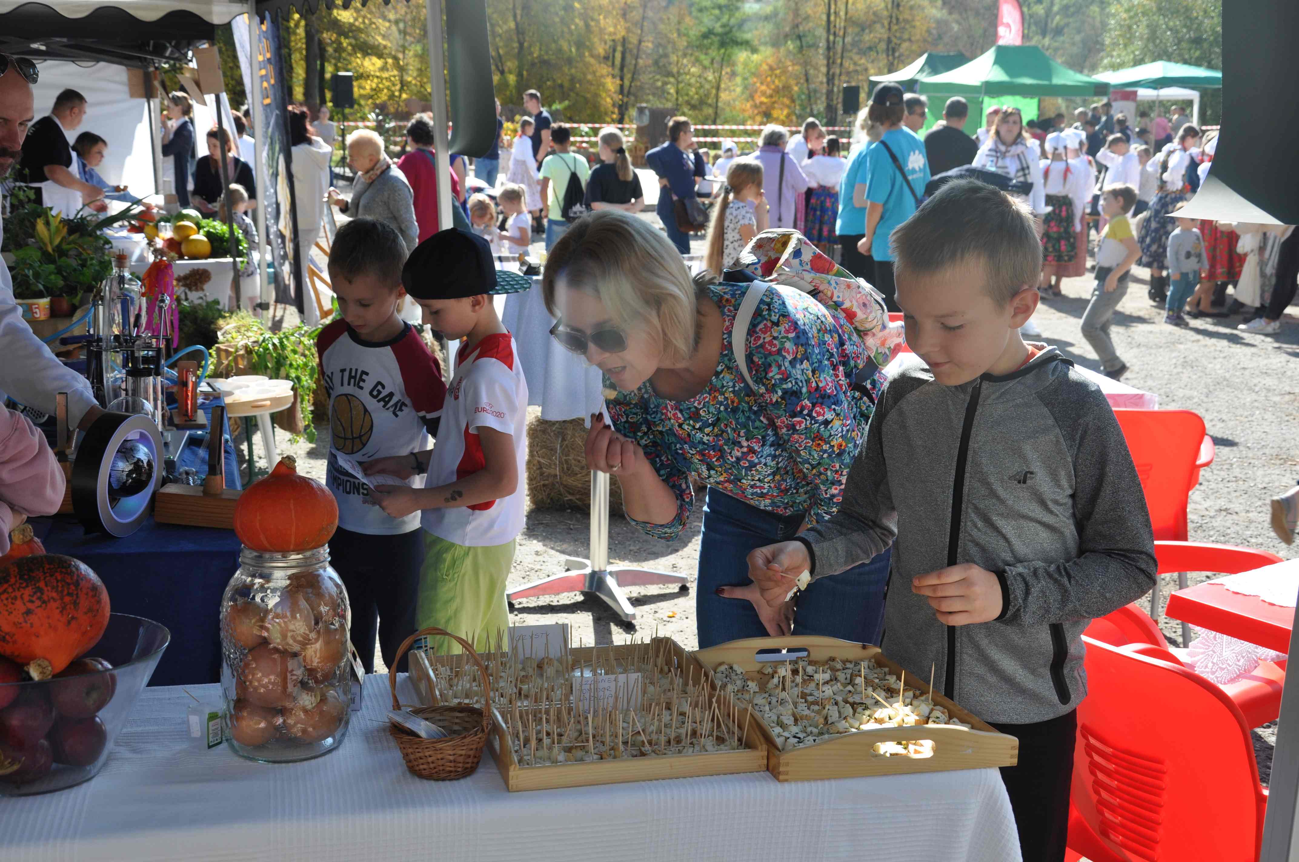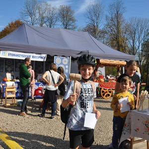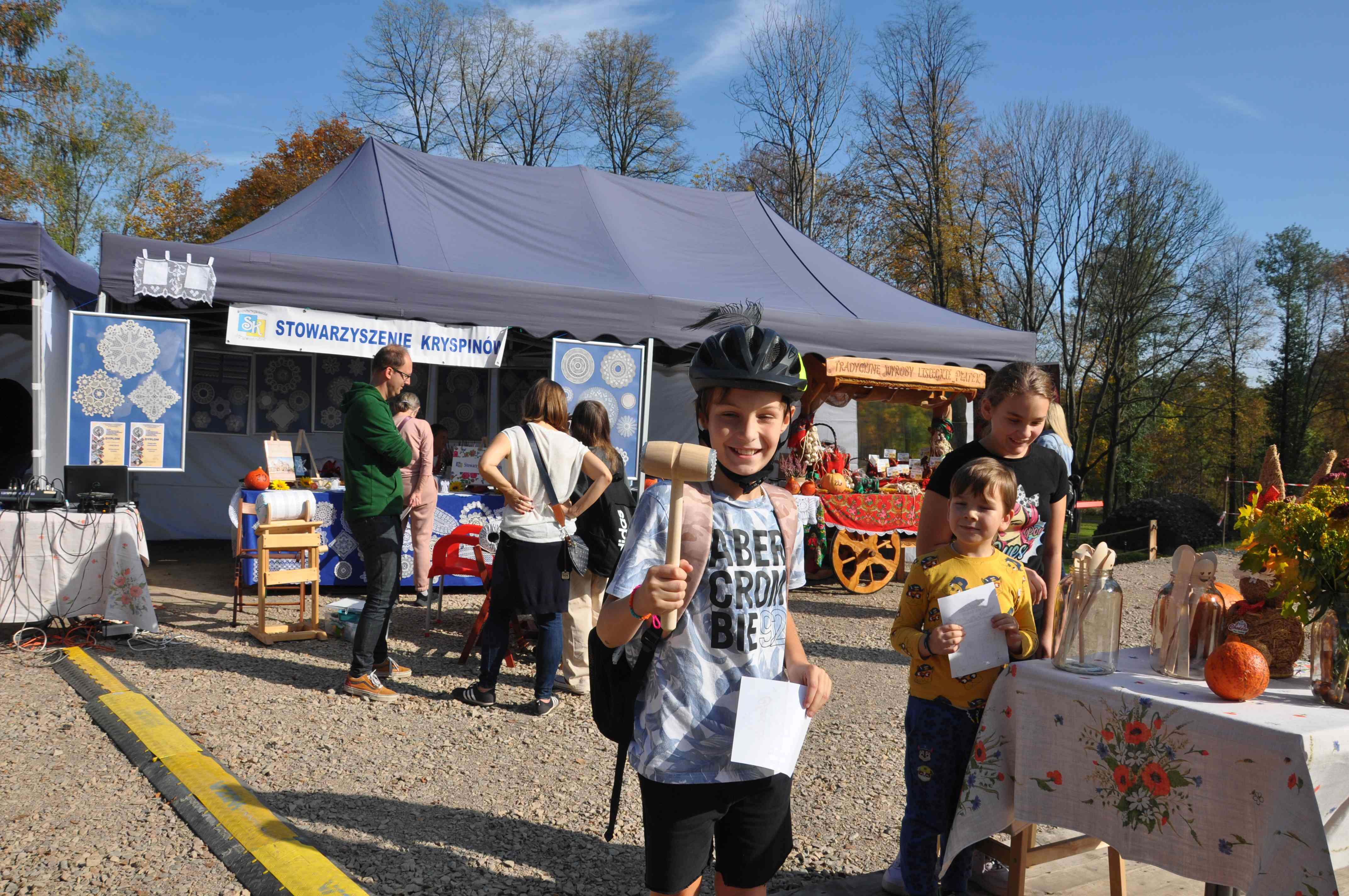 W przepiękną, słoneczną sobotę, 8 października, przy kościele parafialnym w Gaju gościliśmy wystawców, producentów, rolników i artystów z Brzyczyny, Chorowic, Bukowa, Gaja, Kulerzowa, Libertowa, Lusiny, Mogilan i Włosani. Mieśmy także gości z gmin Czernichów, Liszki i Świątniki Górne, którzy przybyli ze swoimi produktami i rękodziełem reprezentując markę Skarby Blisko Krakowa. Jak na dawnych wiejskich targach były nawet towary „kolonialne”, korzeniami sięgające Turcji czy Gruzji. Dla dzieci zamiast tradycyjnej karuzeli były tematyczne zabawy kreatywne, gry i eksperymenty, pokaz produkcji świec z wosku pszczelego, konkursy i atrakcyjne nagrody. Wszyscy nasi wystawcy włączyli się w zaproponowaną formułę gry stanowiskowej, przygotowane zadania zachęcały aby degustować, rozmawiać, żartować, integrować się. Na tych stanowiskach całe rodziny spędzały miło czas.