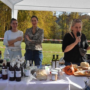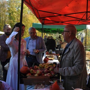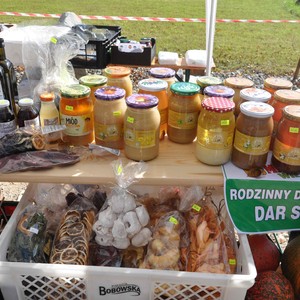 Kierując do Państwa zaproszenie na pierwszy targ w naszej gminie, oparty o lokalne produkty i tutejsze dziedzictwo kulinarne, pragnęliśmy stworzyć klimat wiejskiego targowiska nie tylko w formule handlowej ale także przestrzeni do spotkania, rozmowy, wymiany receptur i współpracy. Udało się: dżem boczkowy na powitanie, swojskie wędliny, nabiał, miody, cydr, owoce, lokalne przetwory, kiermasz jesiennych sadzonek i unikalne rękodzieło cieszyły się ogromnym powodzeniem.