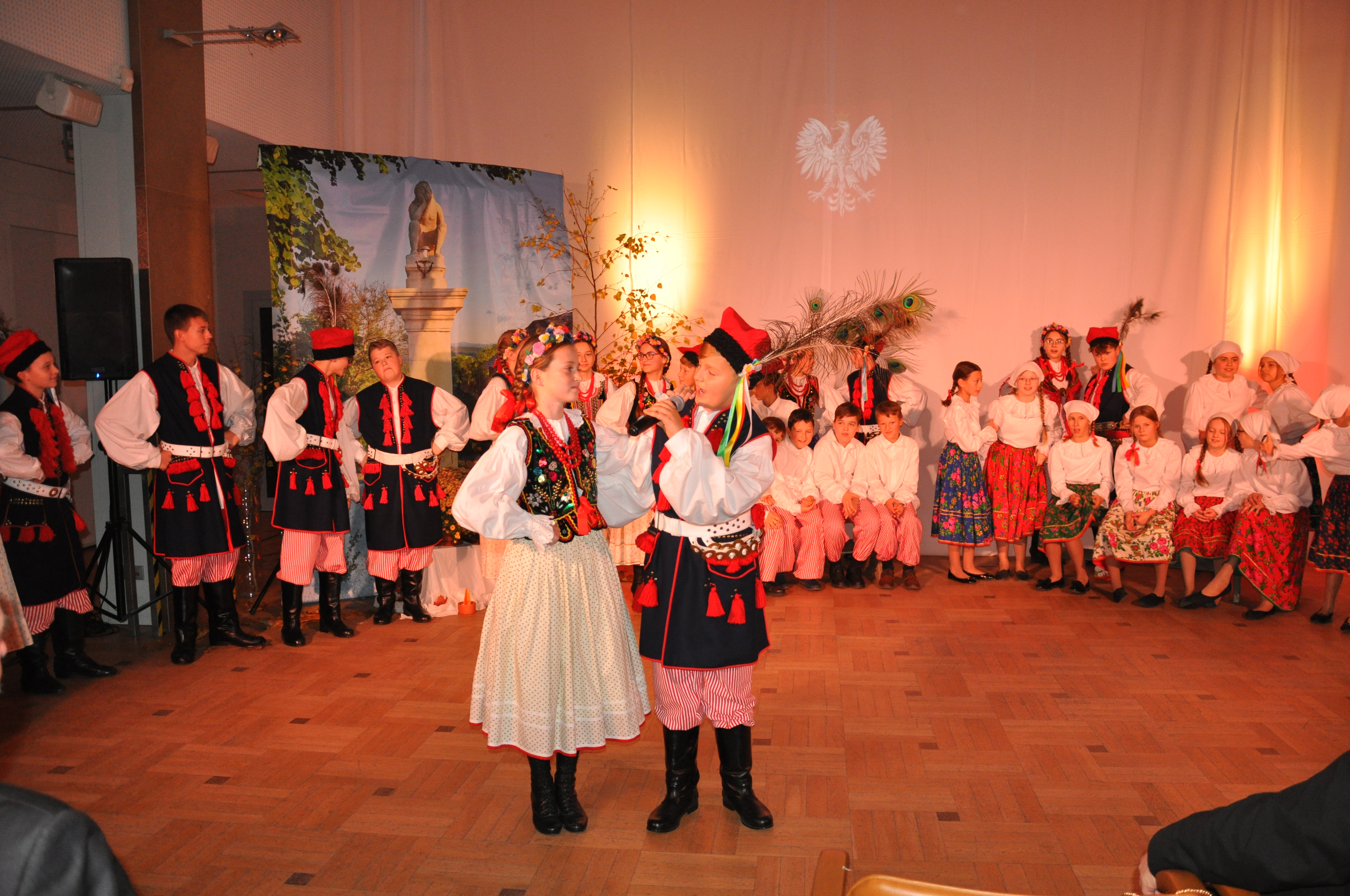 W Sali narad Urzędu Gminy Mogilany uczniowie ze Szkoły Podstawowej im. Oskara Kolberga z Bukowa zaprezentowali patriotyczny program artystyczny. Dziękujemy za przepiękny występ uczniom, a pedagogom za wysiłek włożony w przygotowanie dzieci wraz z chórem Chórem "Mogilanum" mieszkańcy Mogilan wzięli udział we wspólnym śpiewie pieśni patriotycznych. Uroczystość uświetniła Orkiestra Dęta OSP we Włosani.