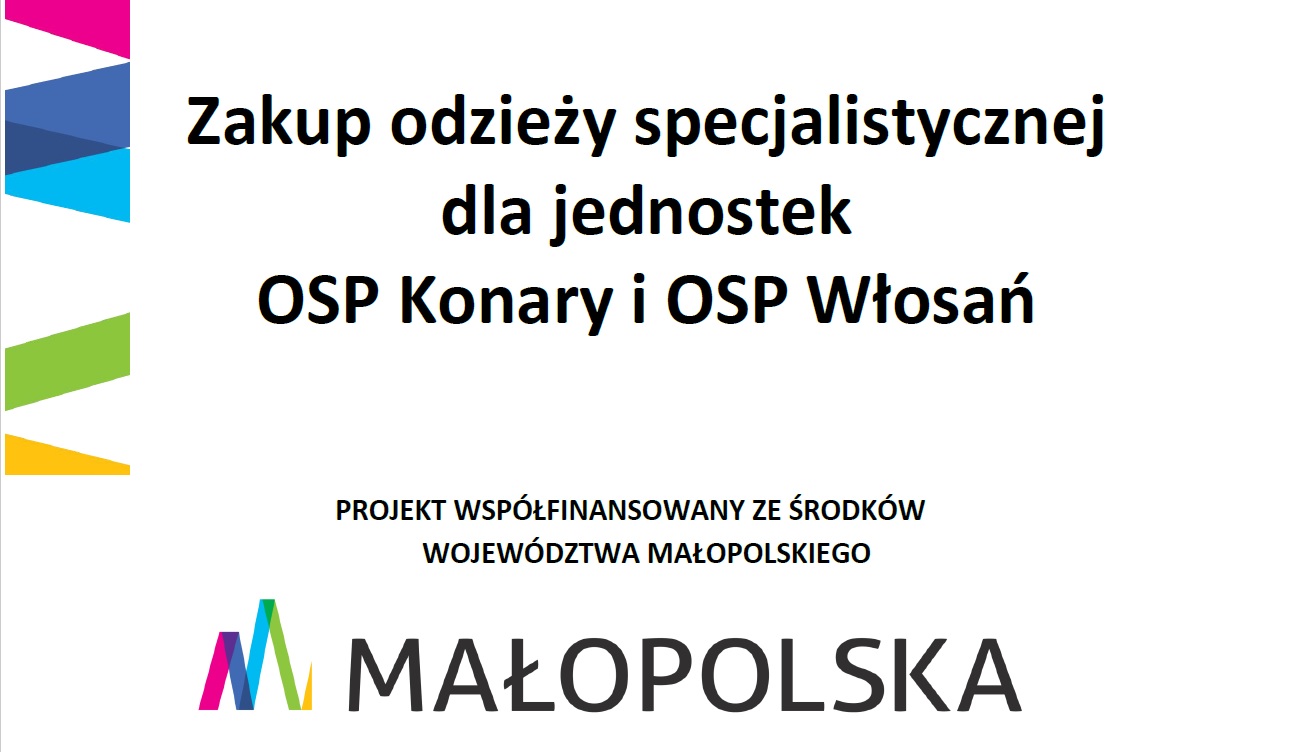 W dniu 30 grudnia 2022 roku w sali narad Urzędu Gminy Mogilany miało miejsce przekazanieodzieży specjalistycznej dla jednostek Ochotniczej Straży Pożarnej z Konar i Włosani. W ramach zadania zakupiono ubrania koszarowe, ubrania ochronne, rękawice, buty strażackie, hełmy, bluzy polarowe i organizacyjne koszulki polo. Umundurowanie zostało zakupione w ramach pomocy finansowej udzielonej dla gmin z przeznaczeniem dla jednostek OSP z terenu województwa małopolskiego, które zadeklarowały współpracę przy zabezpieczeniu Igrzysk Europejskich w Krakowie i w Małopolsce w 2023 roku.