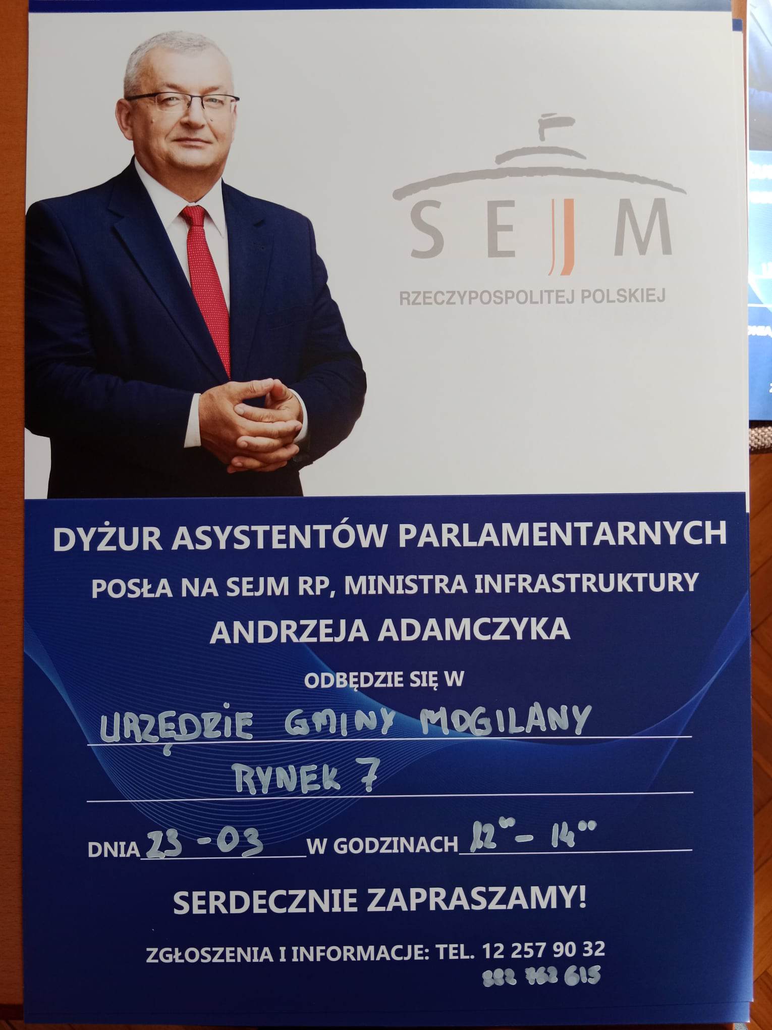 Informacji o dyżurze Asystenta Parlamentarnego Posła Pana Andrzeja Adamczyka w dniu 23.03.2023 r.