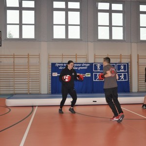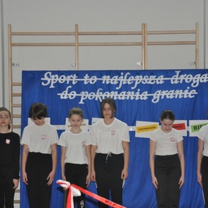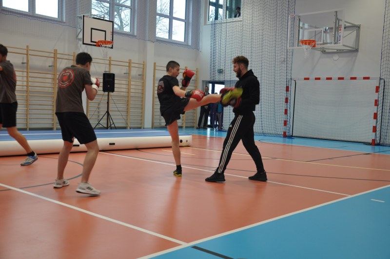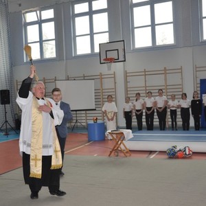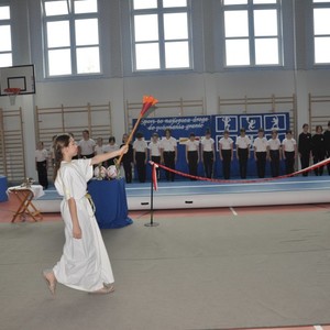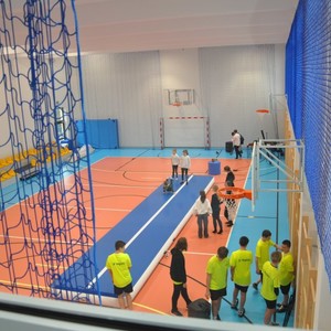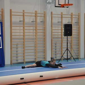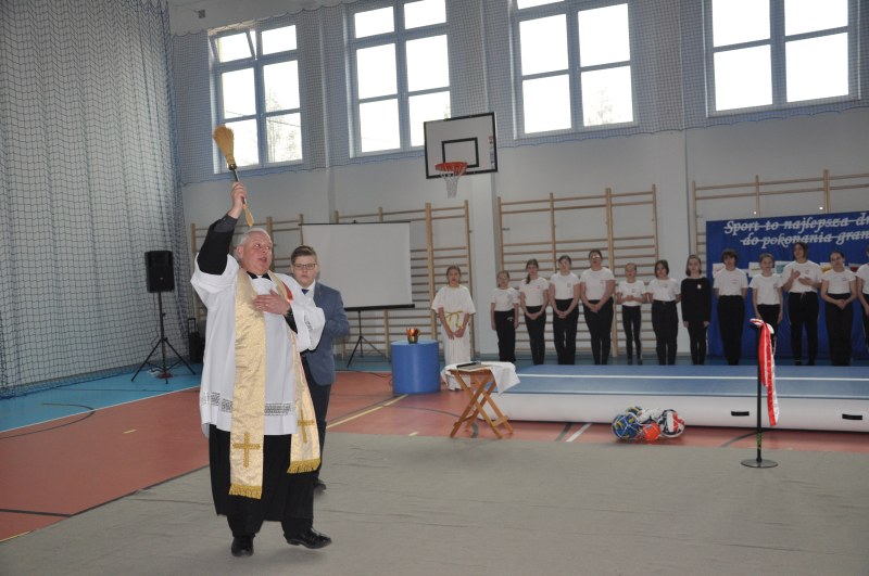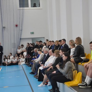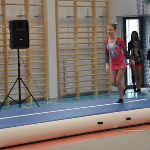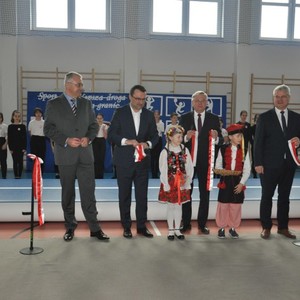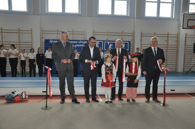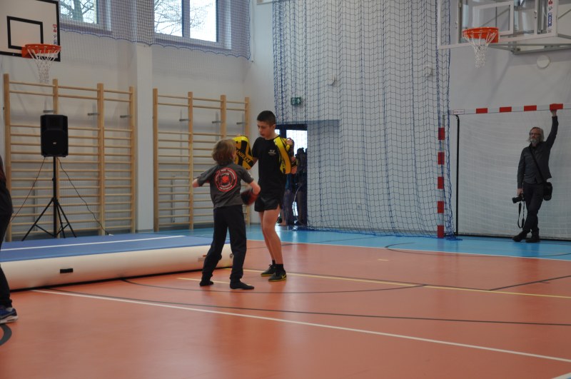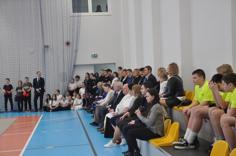 Po pierwszej części oficjalnej, w której znalazły się liczne odwołania do idei sportowych i olimpijskich i oficjalne wystąpienia, nastąpiło symboliczne przecięcie wstęgi poświęcenie sali. Ważny punkt programu stanowił znakomicie przygotowany pokaz artystyczno-sportowy. Licznie wystąpiły dzieci i młodzież z tutejszej szkoły oraz zawodnicy Akademii Sztuk Walki „Fighter” pod opieką nauczycieli wychowania fizycznego i trenerów. Pokazy były bardzo urozmaicone. Mogliśmy podziwiać prezentacje gimnastyki artystycznej i akrobatyki, taniec współczesny i niezwykle dynamiczny pokaz kickboxingu.