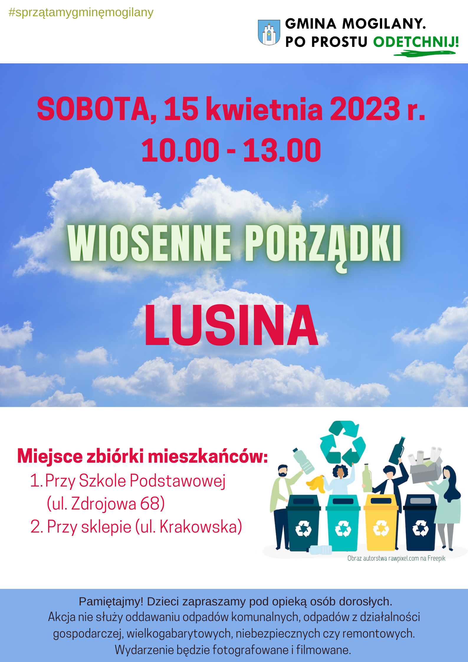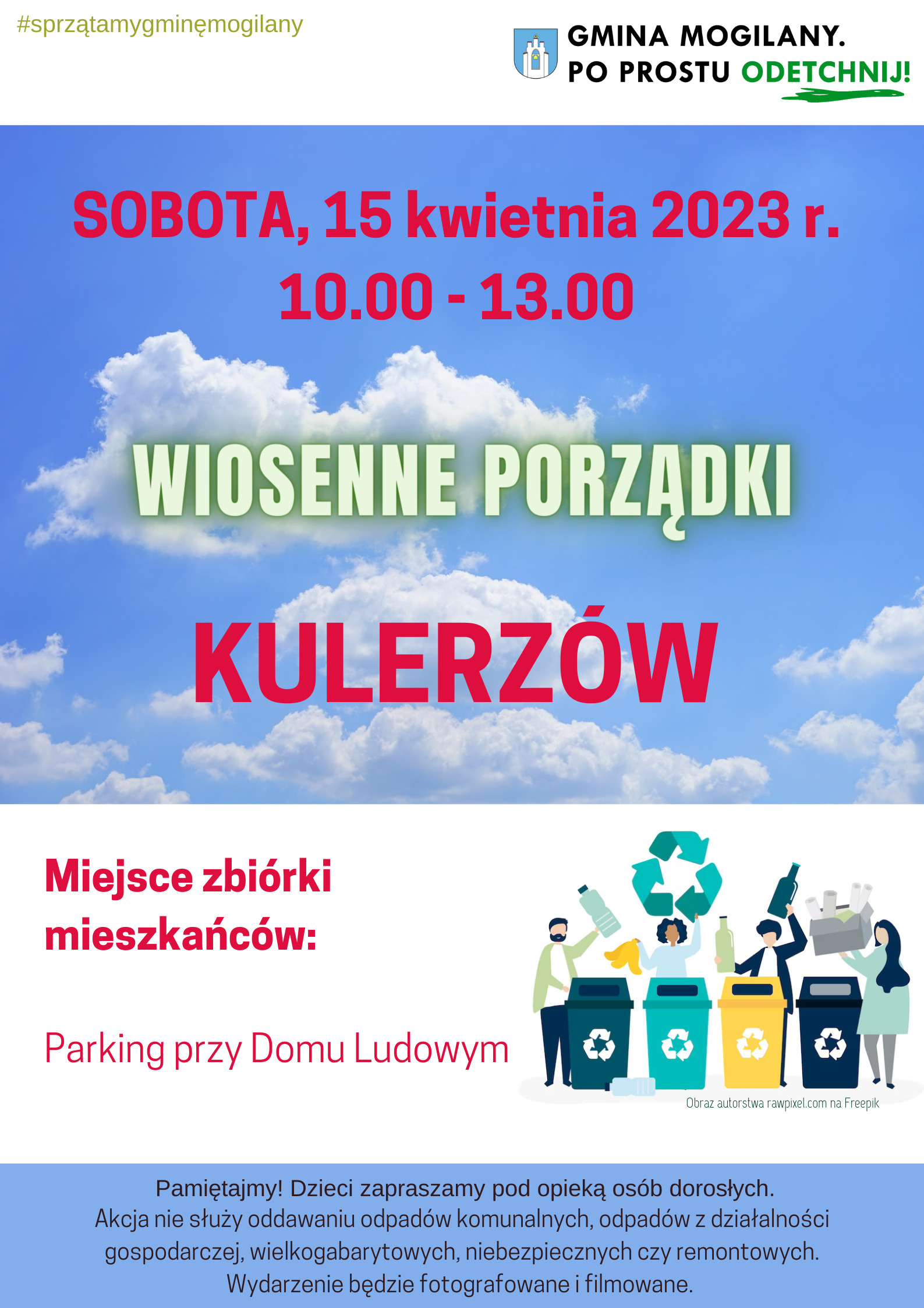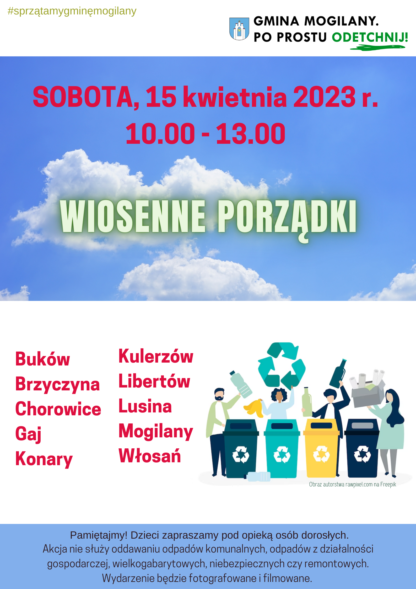 Wiosna to wyjątkowa pora roku, kiedy przyroda budzi się do życia, zatem sprzątamy po zimie i przygotowujemy swoje ogrody na nadejście cieplejszych dni. Zachęcam Państwa, by zadbać także o nasze wspólne dobro, o piękno i porządek w naszych sołectwach – zapraszam do udziału w kolejnej już edycji akcji sprzątania Gminy Mogilany.