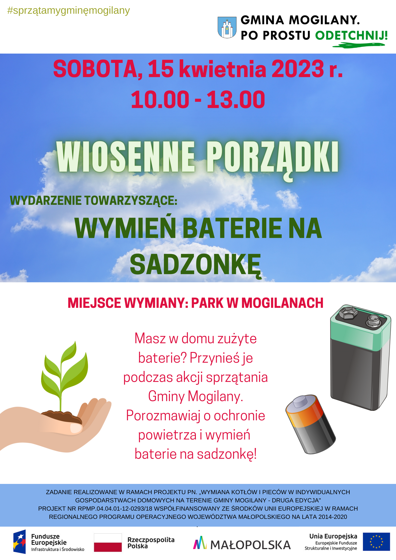 Dodatkowo w Parku w Mogilanach będzie prowadzona zbiórka wymiany zużytych baterii w zamian mieszkańcy otrzymają sadzonki i nasiona.