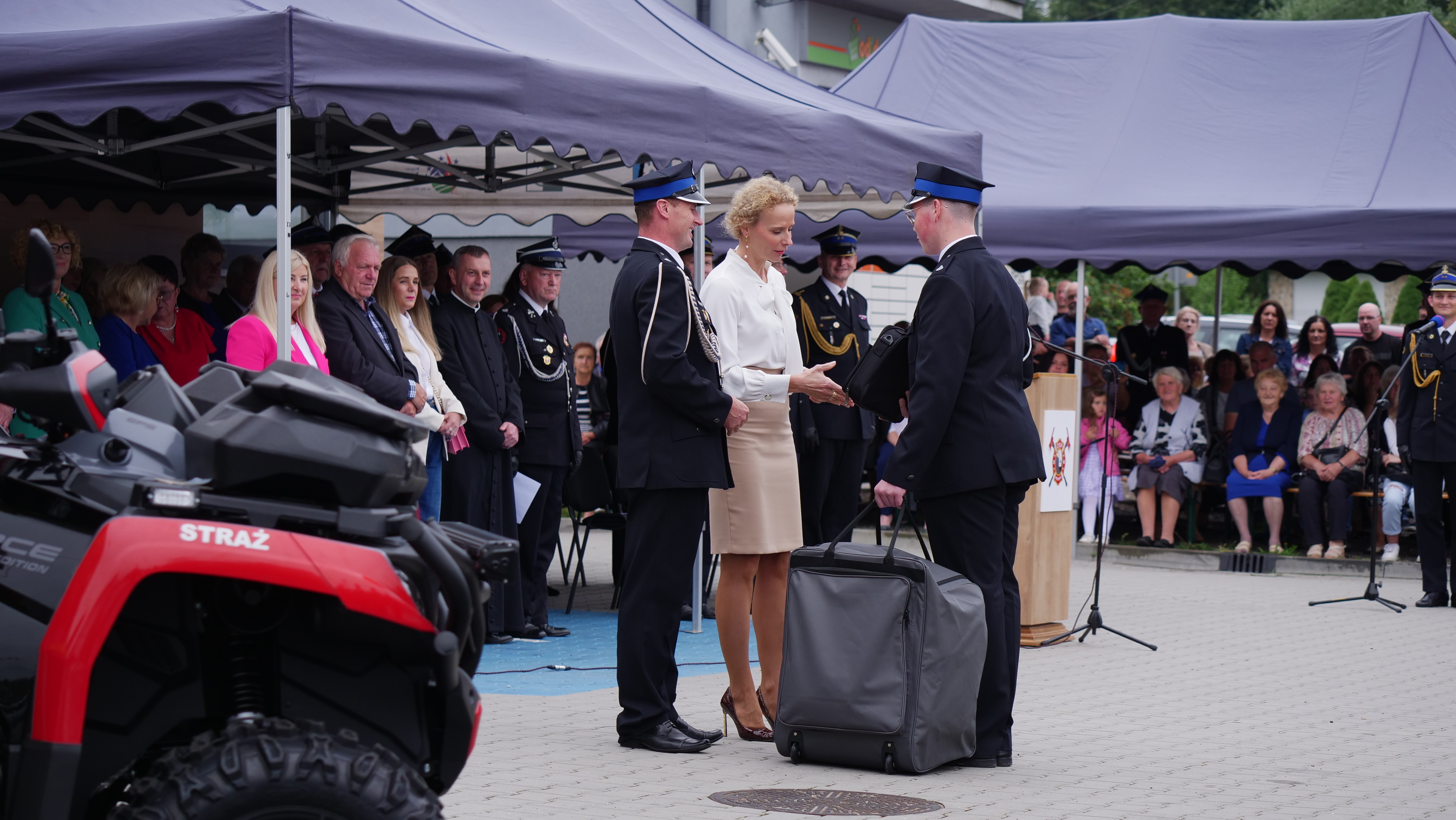 Kolejnym punktem uroczystości było przekazanie quada. Nowy pojazd zwiększy poziom bezpieczeństwa w zakresie ochrony ppoż, ochrony życia i zdrowia mieszkańców.