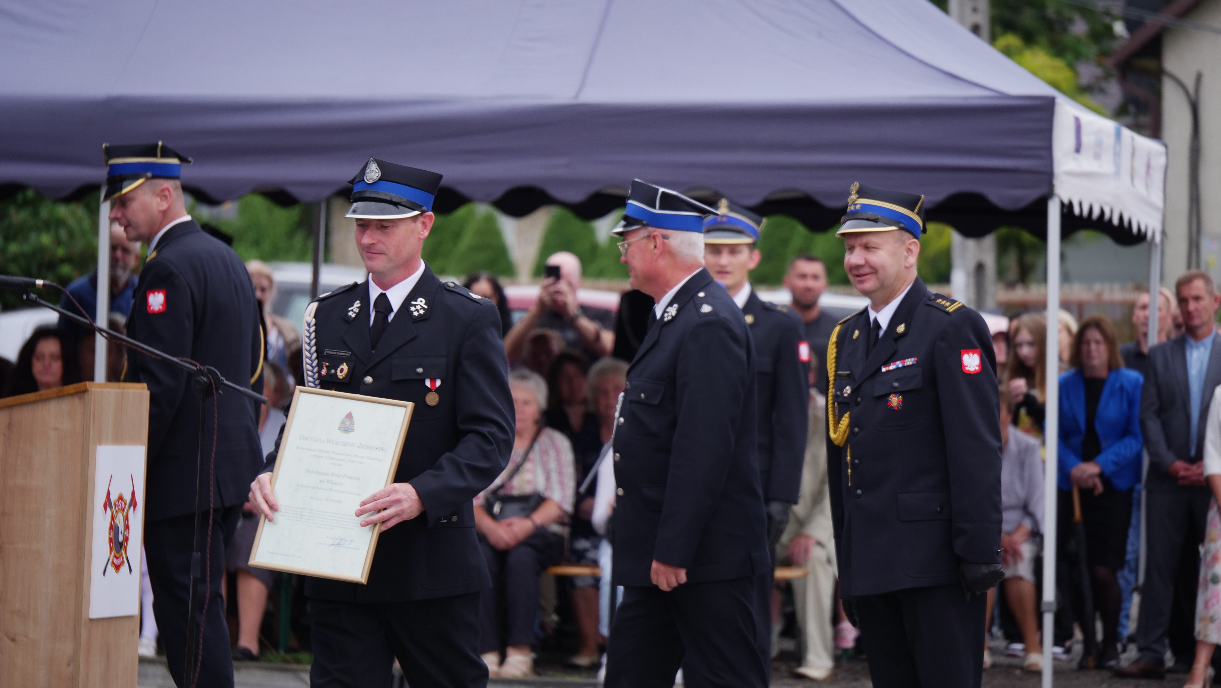 Po mszy świętej, która odbyła się w kościele we Włosani i przemarszu do siedziby OSP Włosań, w obecności Radnych Gminy Mogilany oraz Wójta Piotra Piotrowskiego, zastępów strażackich, pocztów sztandarowych, zaproszonych gości i mieszkańców Zastępca Komendanta Państwowej Straży Pożarnej w Krakowie st. bryg. Andrzej Nowak przekazał na ręce Prezesa Ochotniczej Straży Pożarnej we Włosani dh. Tomasza Gadochy decyzję o włączeniu do KSRG.