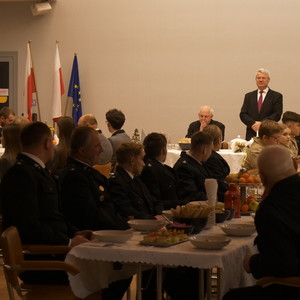 Wójt Gminy Mogilany podczas składania życzeń, dziękował Strażakom za całoroczne zaangażowanie w życie lokalnej społeczności, gotowość niesienia pomocy ludziom i dawanie swoją postawą wzoru bezinteresownego poświęcenia dla drugiego człowieka.