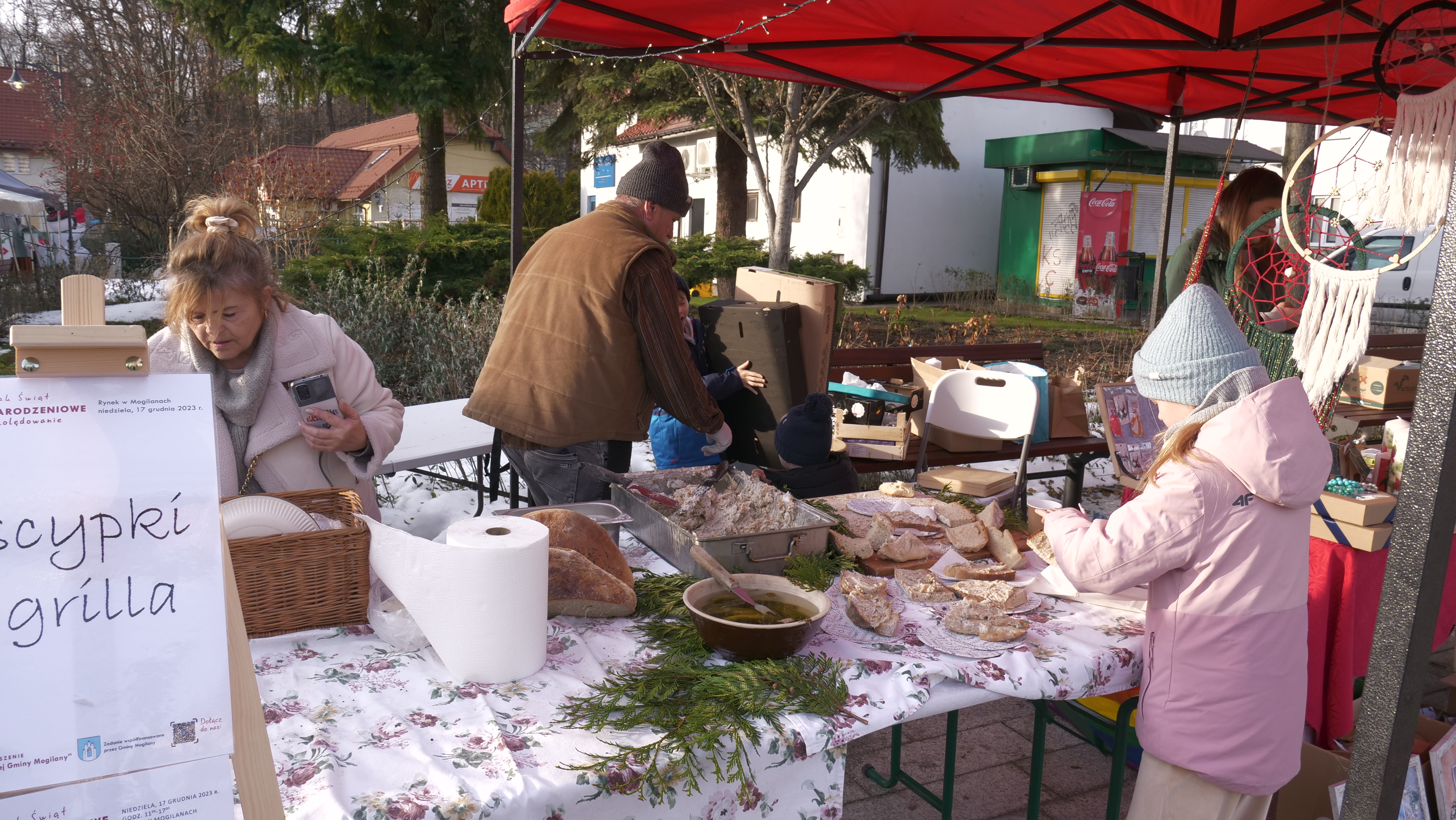 Świąteczne spotkanie na Rynku w Mogilanach - świetna atmosfera, pyszne jedzenie, piękne ozdoby i wspólne śpiewanie kolęd.