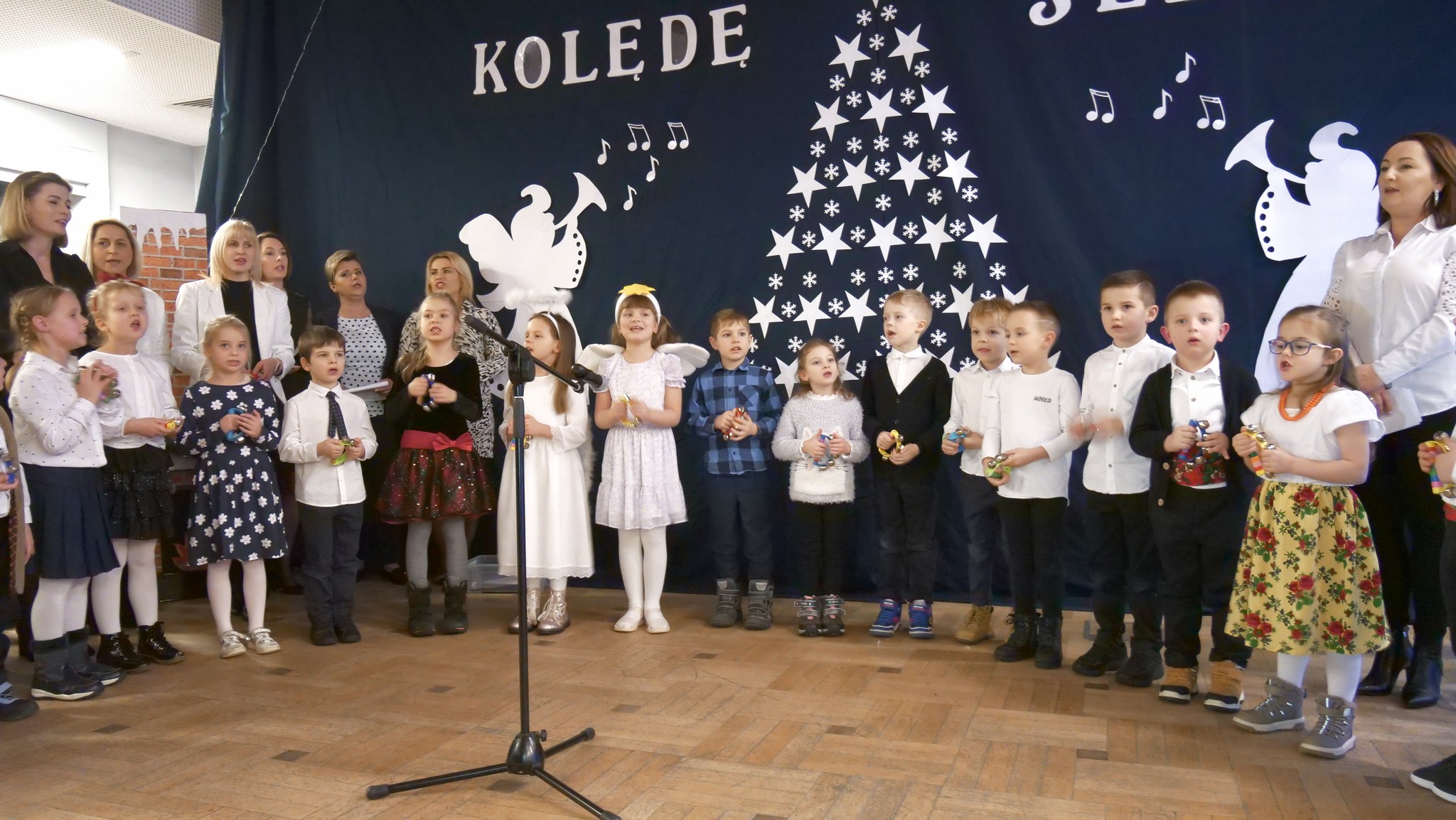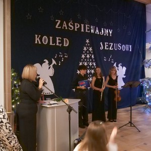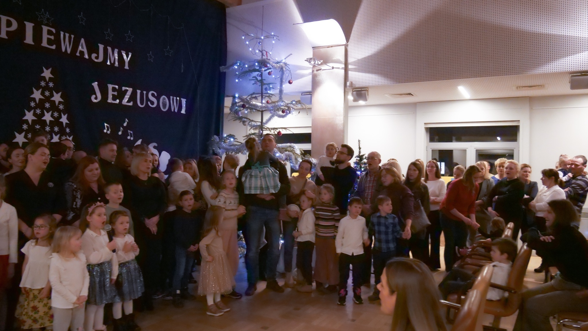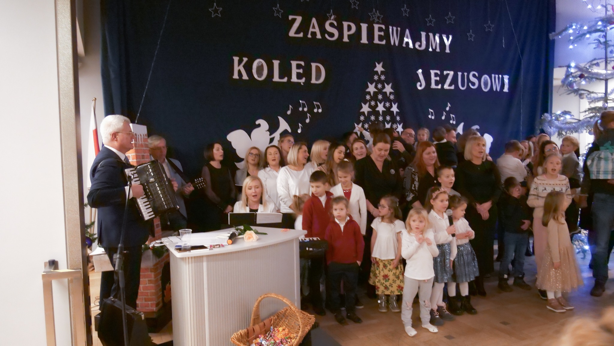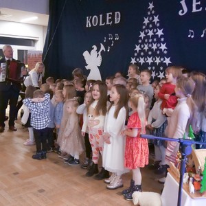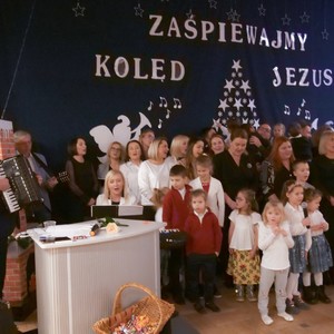 Zwieńczeniem spotkania było wspólne śpiewanie kolęd przez dzieci, nauczycieli, rodziców i wszystkich zebranych przy akompaniamencie akordeonu, fortepianu oraz mandoliny