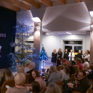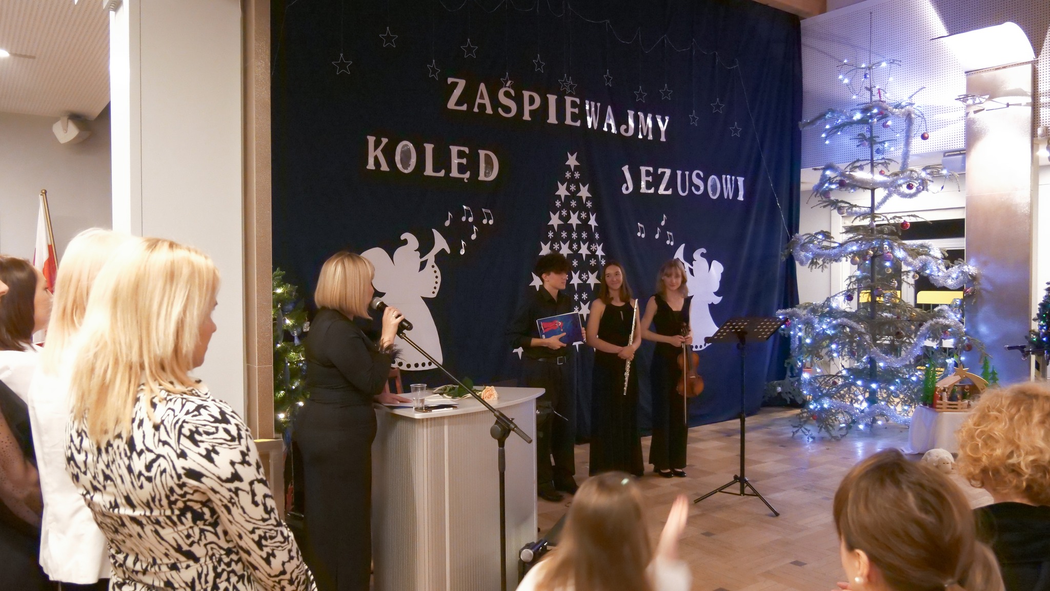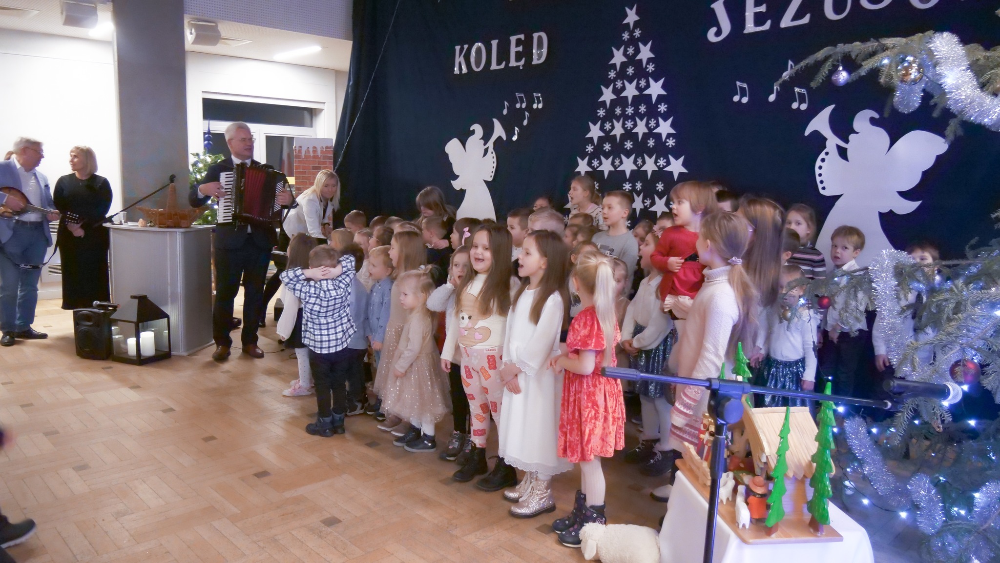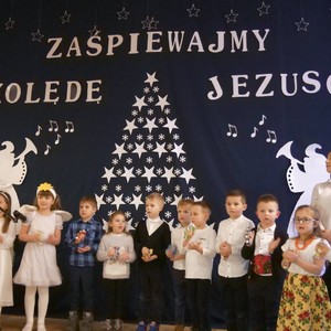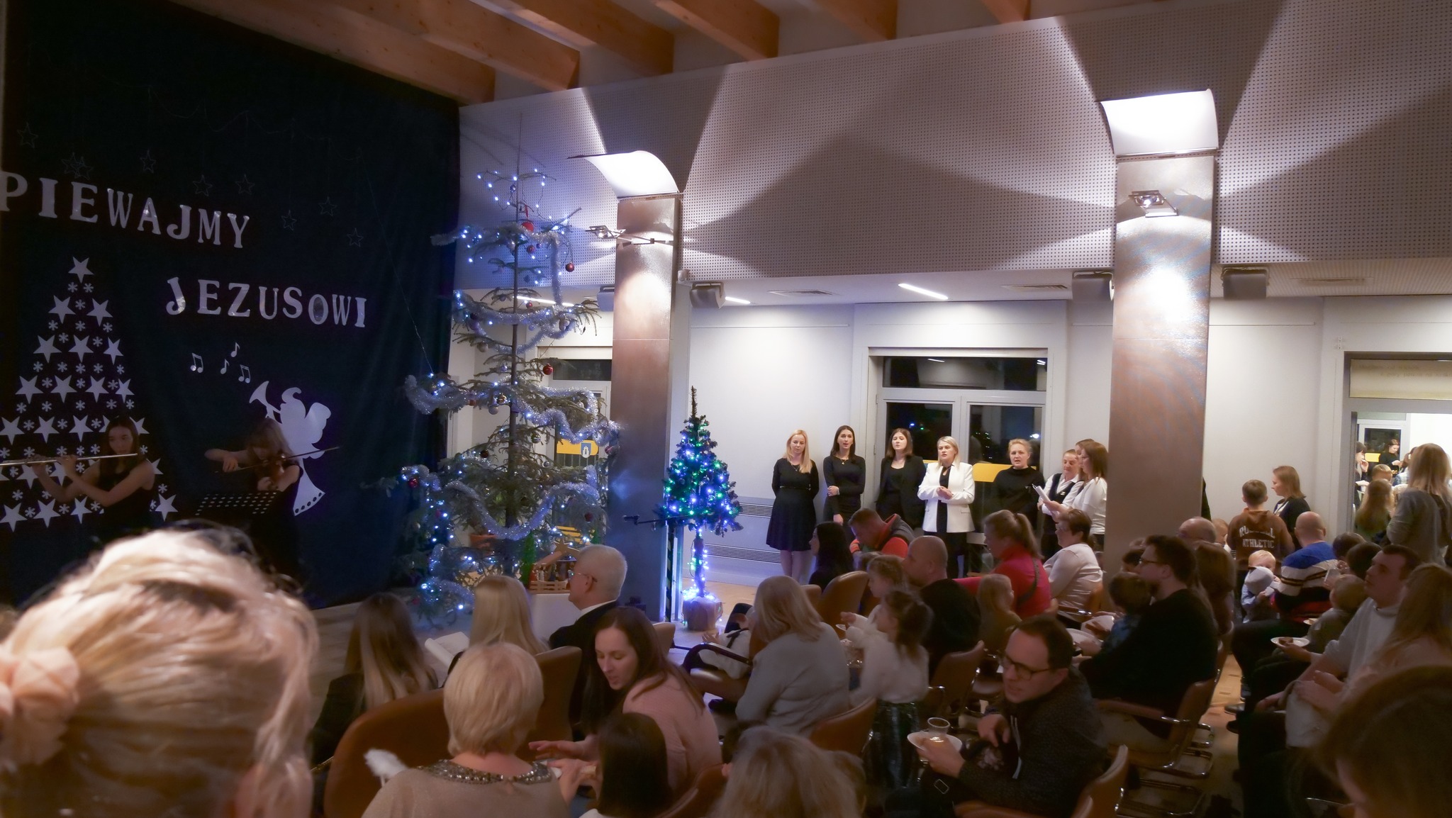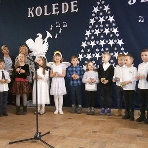 Zwieńczeniem spotkania było wspólne śpiewanie kolęd przez dzieci, nauczycieli, rodziców i wszystkich zebranych przy akompaniamencie akordeonu, fortepianu oraz mandoliny