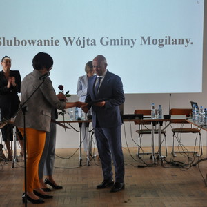 W dalszej części posiedzenia, Przewodnicząca Gminnej Komisji Wyborczej w Mogilanach wręczyła Panu Jerzemu Przeworskiemu zaświadczenie o wyborze na Wójta Gminy Mogilany.