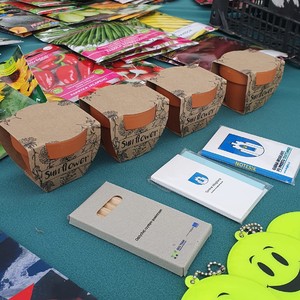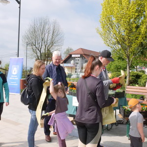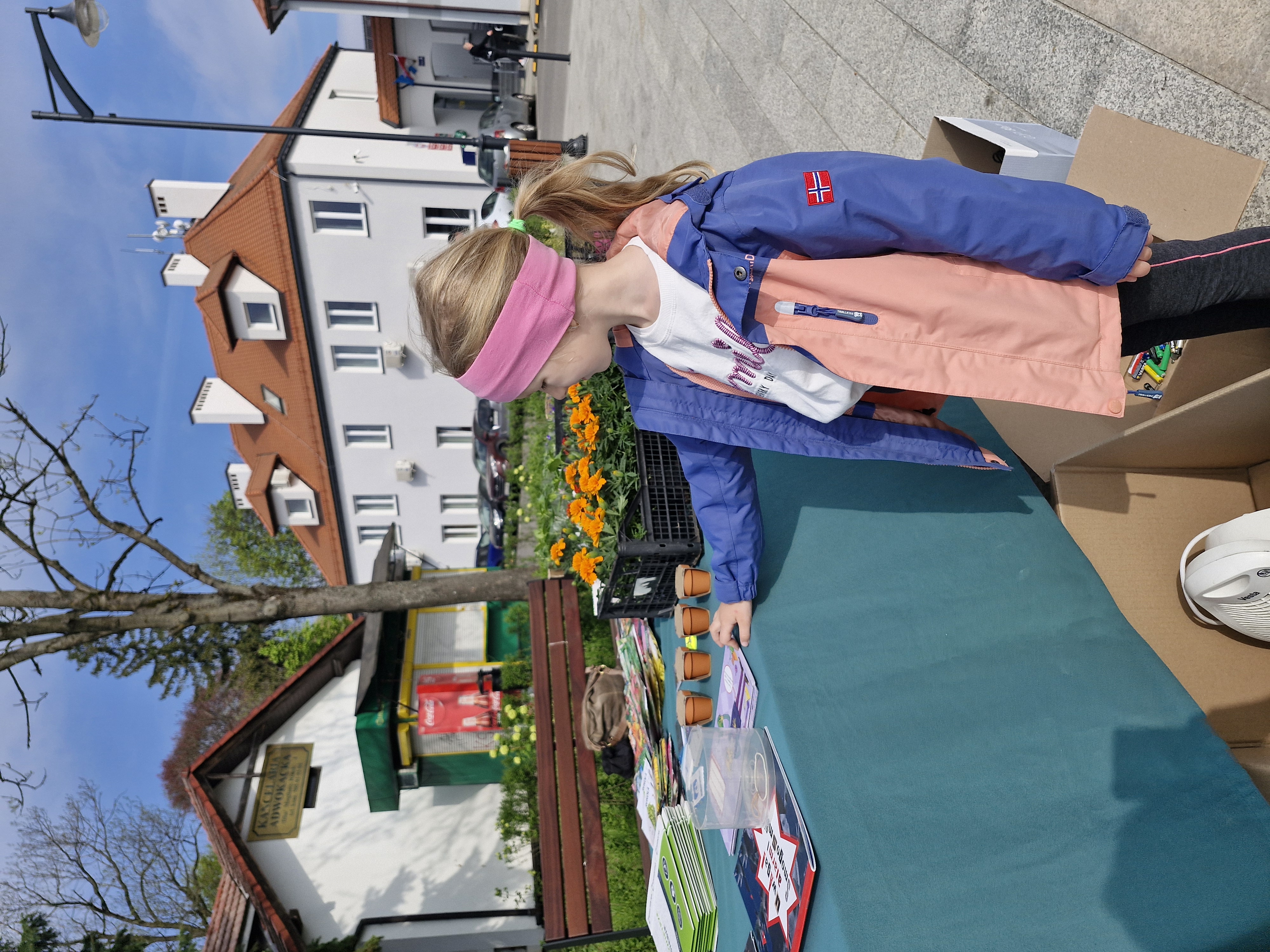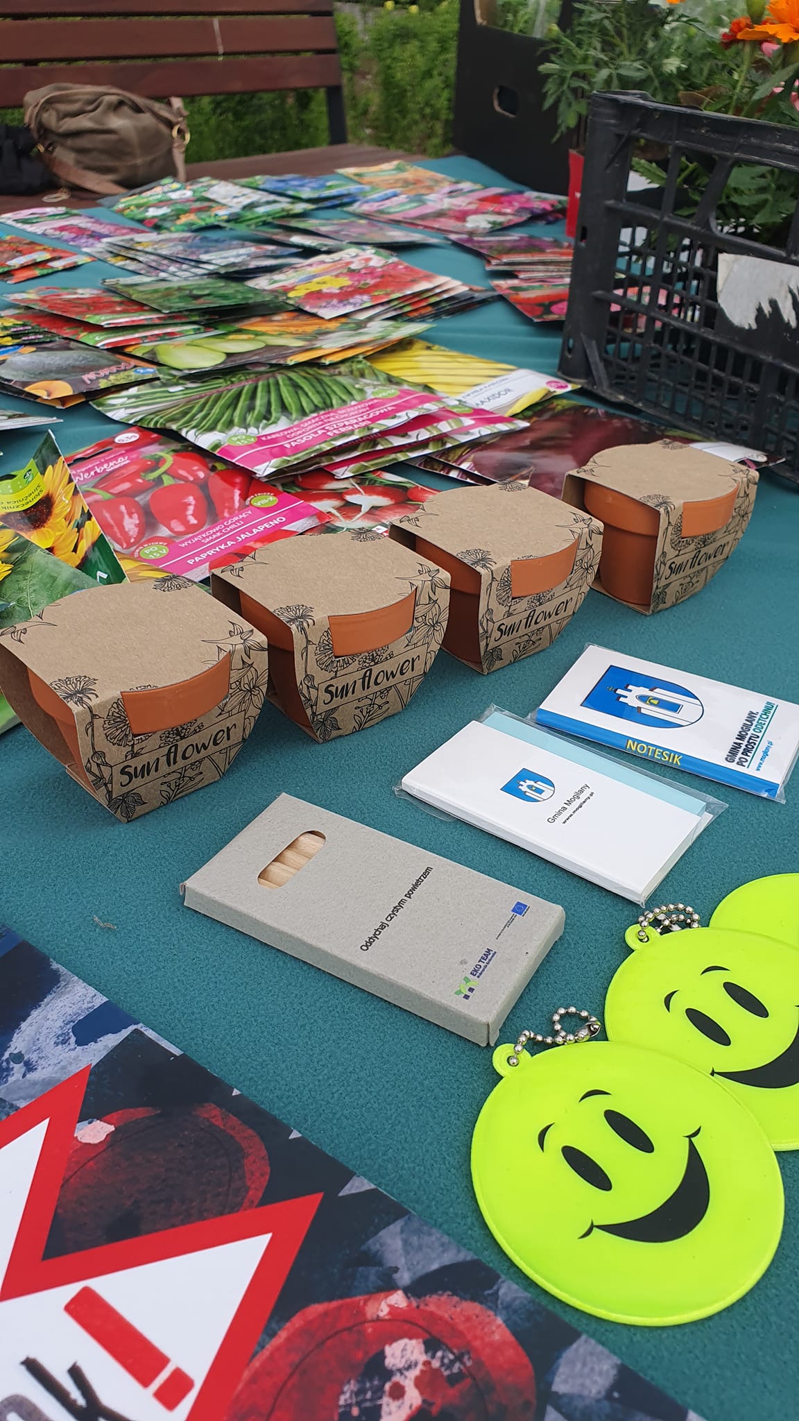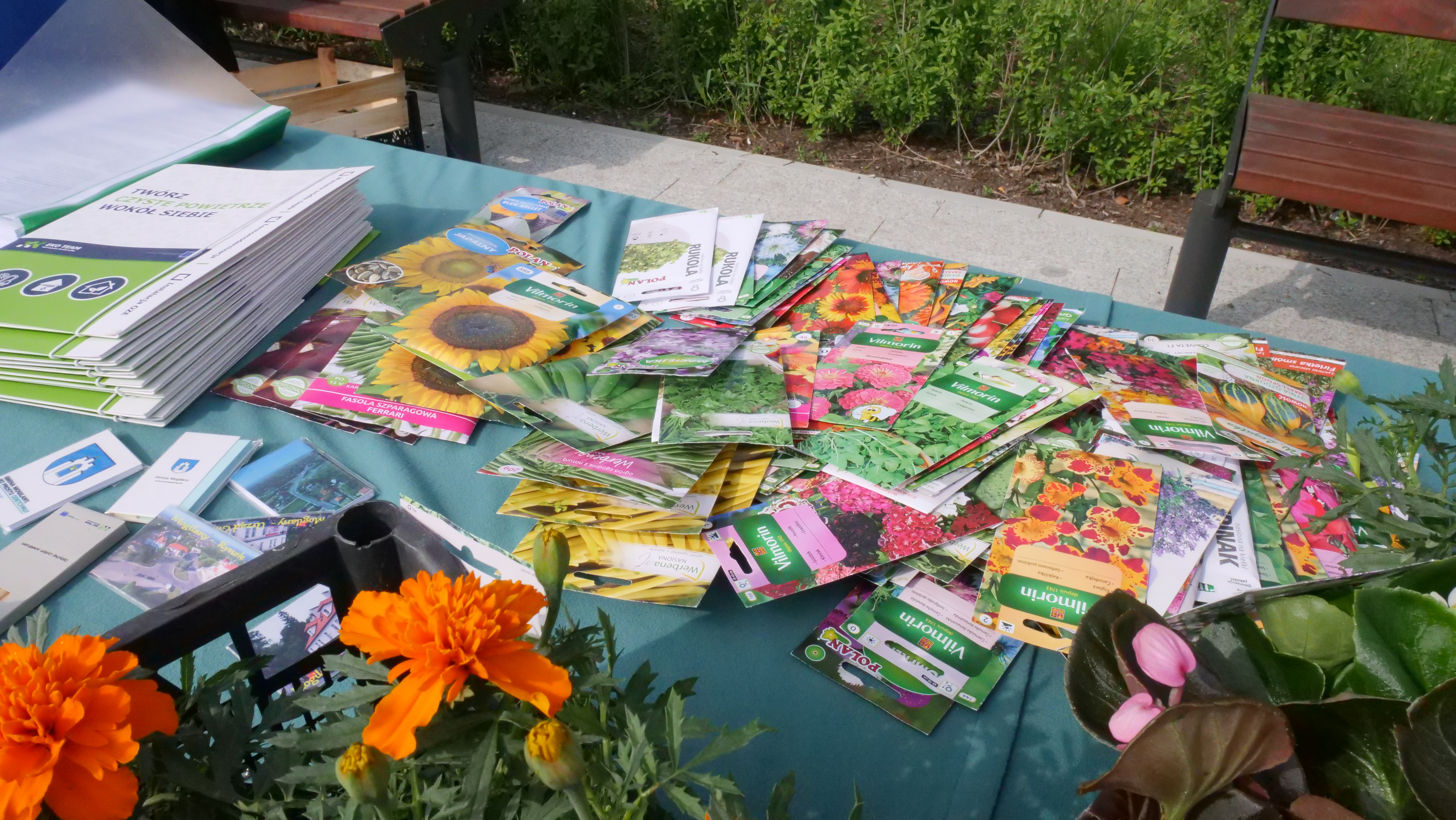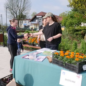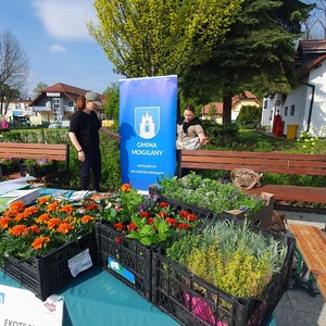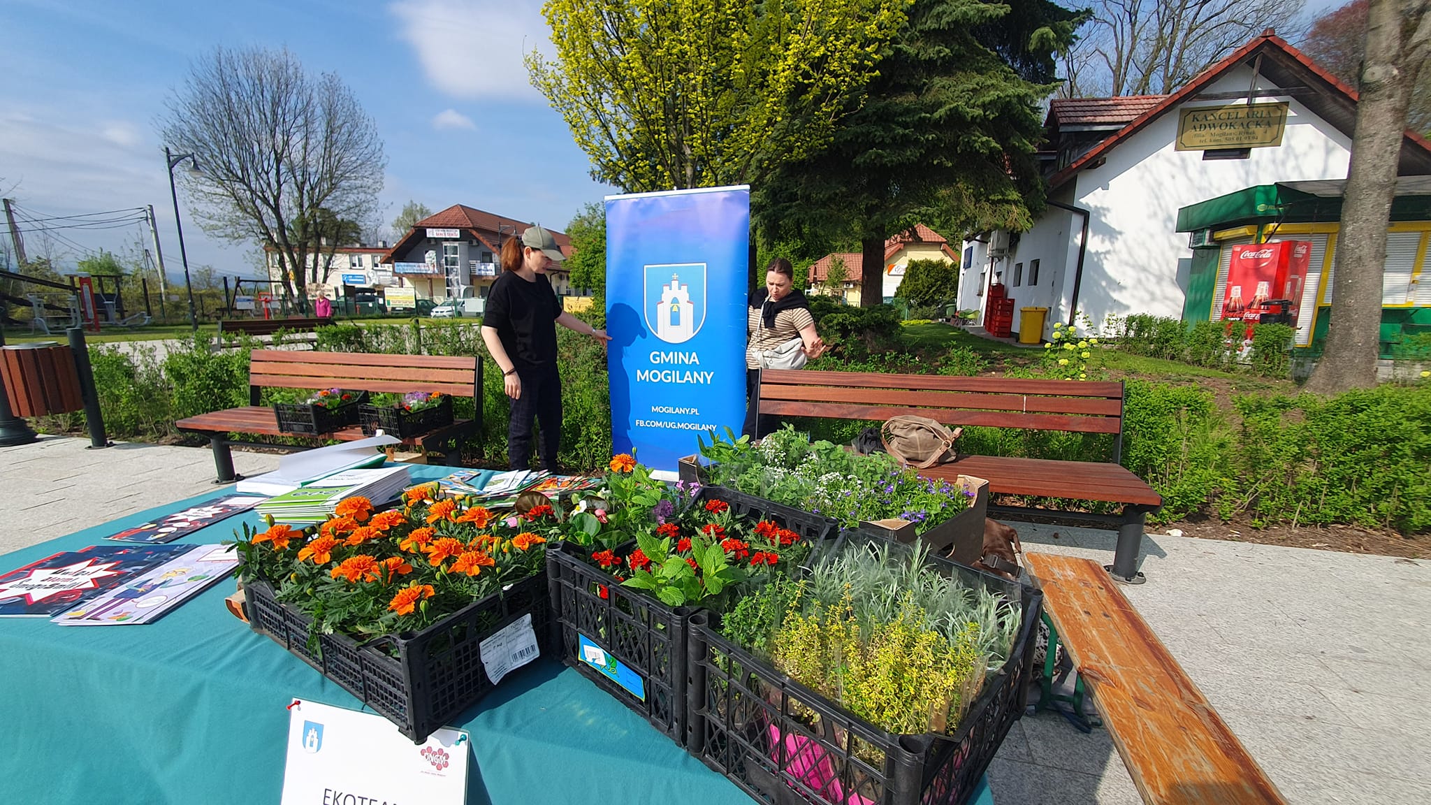 Na mogilańskim Rynku zostało utworzone kolorowe kwiatowe stanowisko, gdzie można było oddać zużyte baterie, małe elektrośmieci i skorzystać z porad Ekodoradczyń.