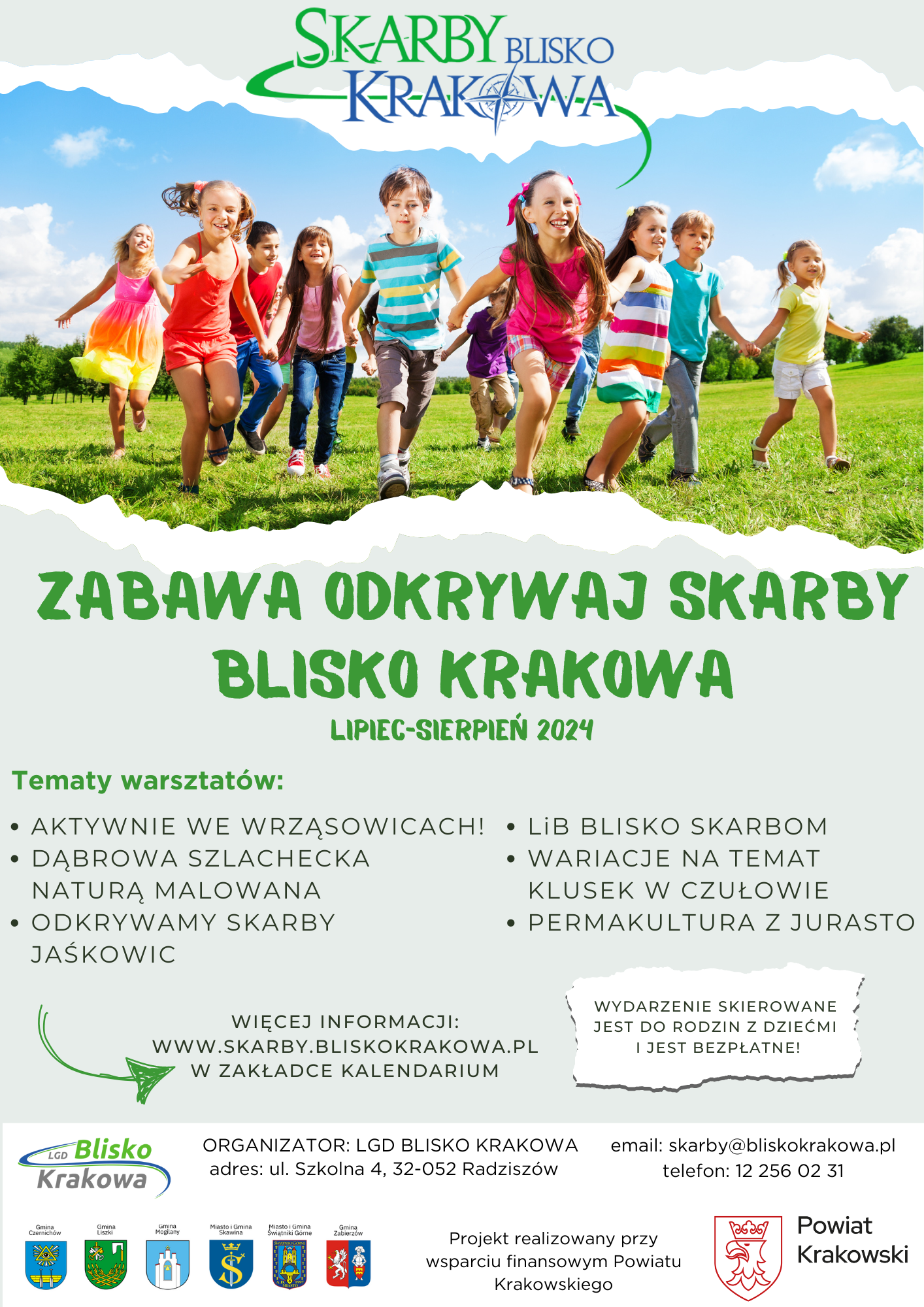 Uwaga: Liczba miejsc jest ograniczona, decyduje kolejność zgłoszeń. Przed wzięciem udziału koniecznie zapoznaj się z Regulaminem Zabawy Odkrywaj Skarby Blisko Krakowa 2024 r.