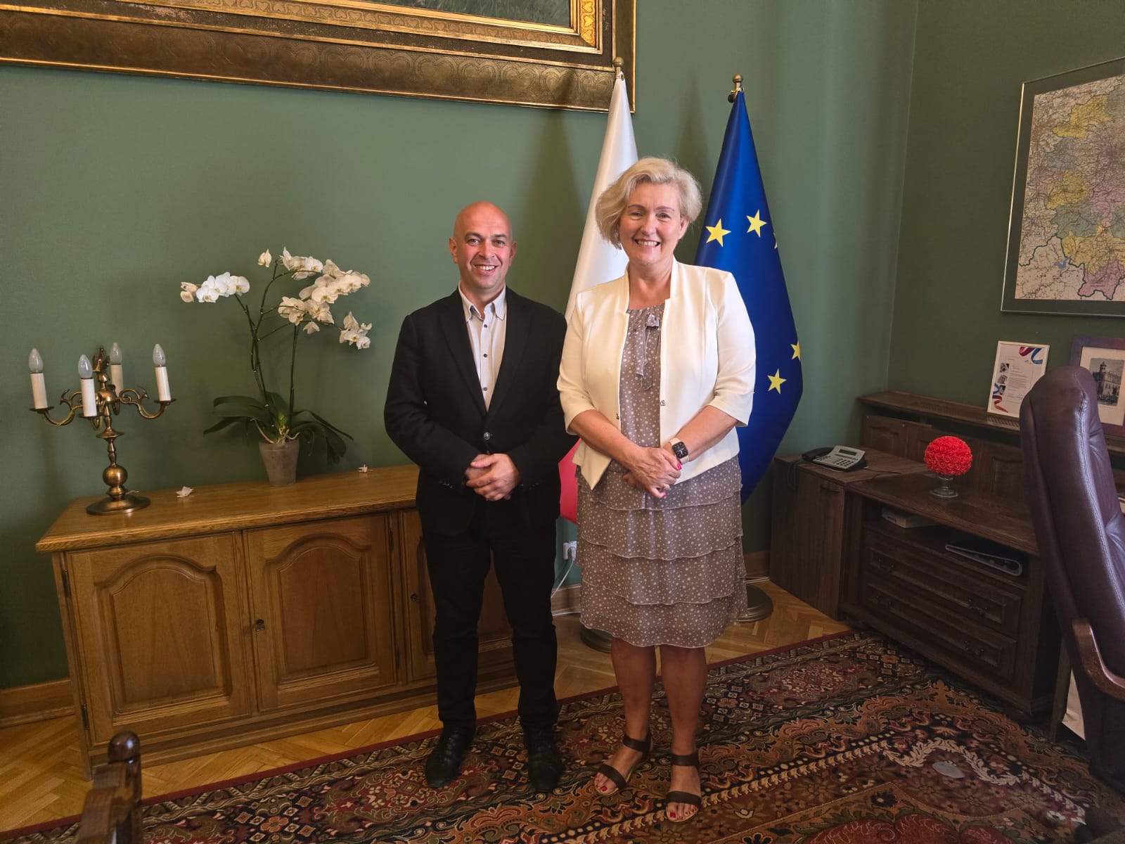 We wtorek 13 sierpnia 2024 roku Wójt Gminy Mogilany Jerzy Przeworski spotkał się z Wojewodą Małopolskim Krzysztofem Janem Klęczarem oraz z I Wicewojewodą Małopolskim Elżbietą Achinger. Podczas spotkania obie strony rozmawiały między innymi o utworzeniu Centrum Usług Społecznych oraz o budowie i finansowaniu żłobków na terenie Gminy Mogilany.