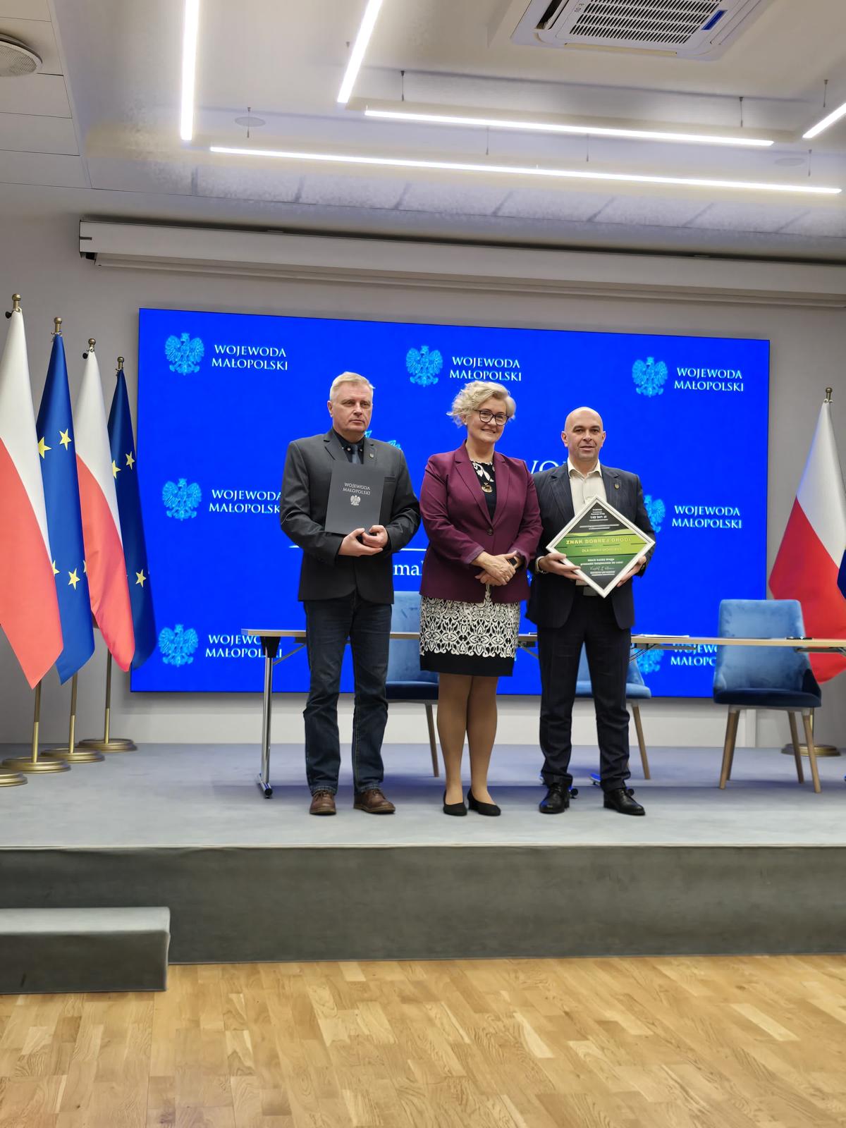 W środę 20 listopada Wójt Gminy Mogilany Jerzy Przeworski - w towarzystwie Skarbnika Gminy Mogilany Jacka Kopcia - podpisał z I Wicewojewodą Małopolskim Elżbietą Achinger umowę, na mocy której środki z Rządowego Funduszu Rozwoju Dróg w wysokości 149 941 zł zostaną przeznaczone na realizację zadania „Remont drogi gminnej 600704K (ul. Chmielnik) w miejscowości Włosań”.