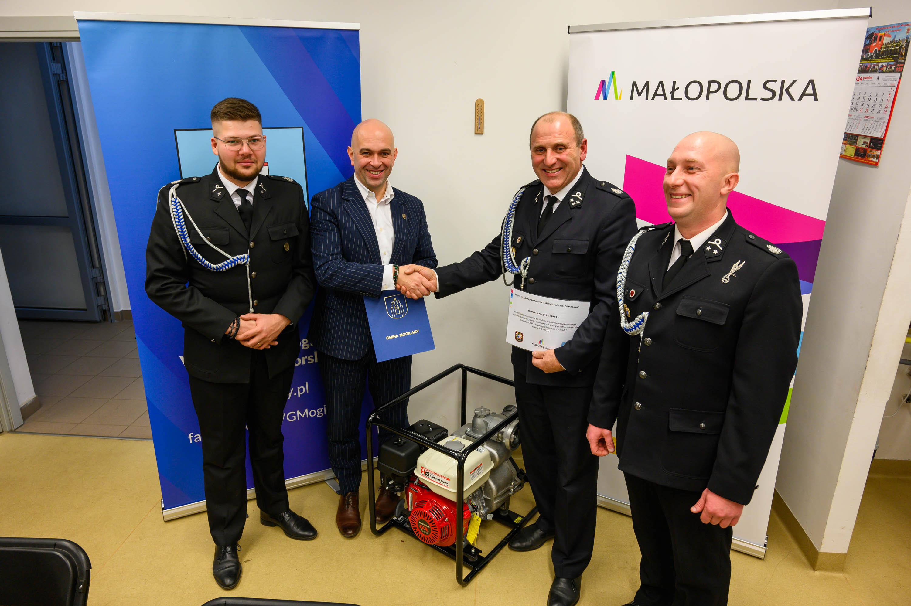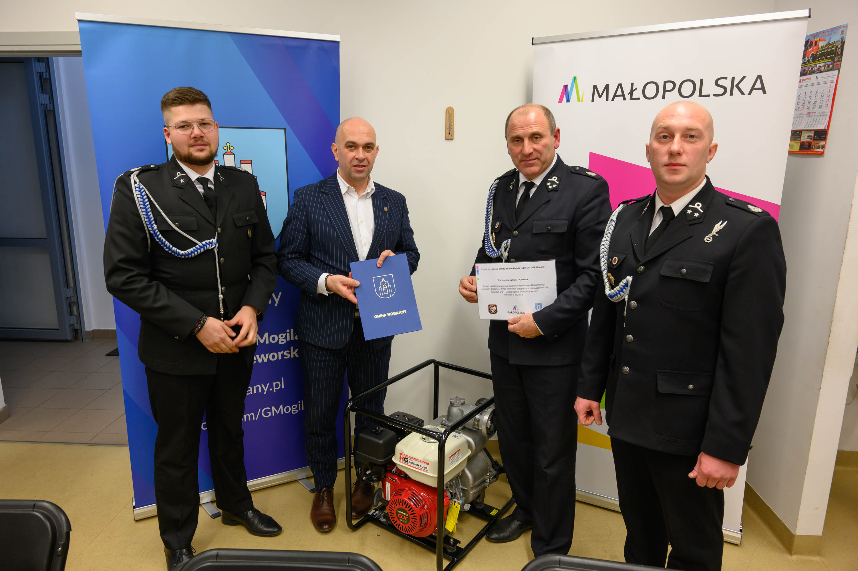 W środę 18 grudnia w Remizie Ochotniczej Straży Pożarnej w Konarach odbyło się uroczyste spotkanie wigilijne, w którym wzięli udział druhowie oraz zaproszeni goście, w tym Wójt Gminy Mogilany Jerzy Przeworski. W trakcie wydarzenia nastąpiło oficjalne przekazanie nowej pompy strażackiej, która od teraz będzie służyła jednostce.