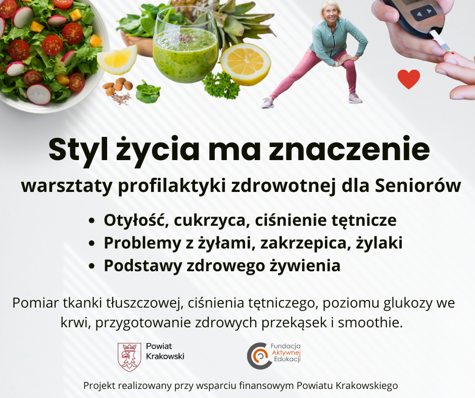 Fundacja Aktywnej Edukacji (Fundacja Aktywnej Edukacji | Facebook) zaprasza Seniorów z Gminy Mogilany na warsztaty profilaktyki zdrowotnej „Styl życia ma znaczenie”. Tematem spotkania będzie otyłość, która jest matką większości chorób związanych z wiekiem m in. chorób serca i naczyń krwionośnych.