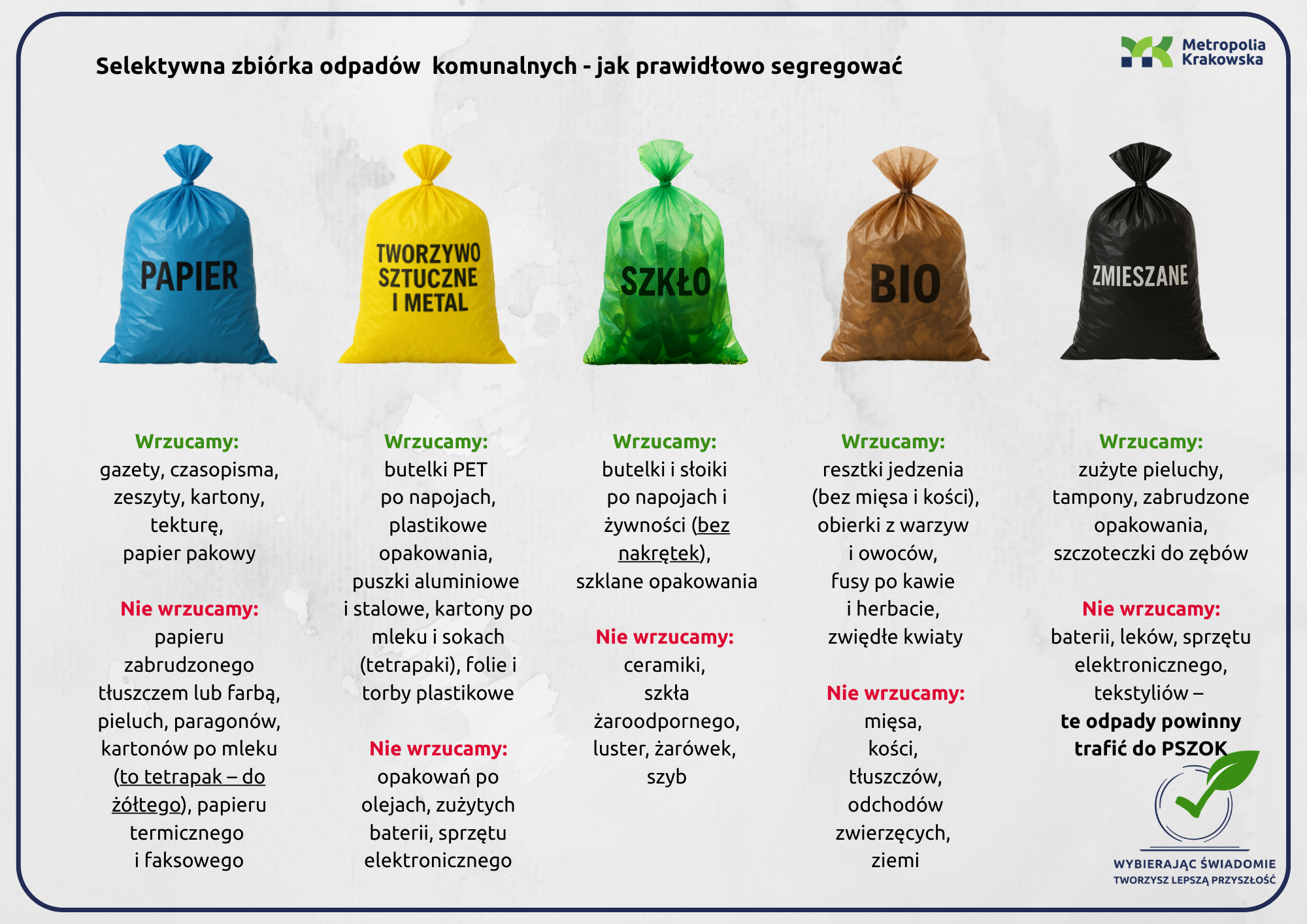 papier, plastik i metal, szkło, bio, zmieszane – wyłącznie to, czego nie da się przypisać do innej frakcji i nie nadaje się do recyklingu.