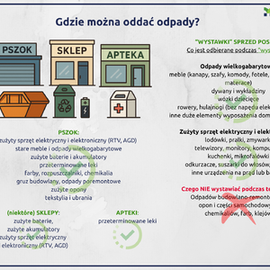 Dodatkowo w Gminie odbywa się zbiórka odpadów wielkogabarytowych i zużytego sprzętu elektrycznego i elektronicznego sprzed posesji.