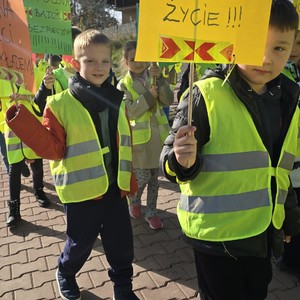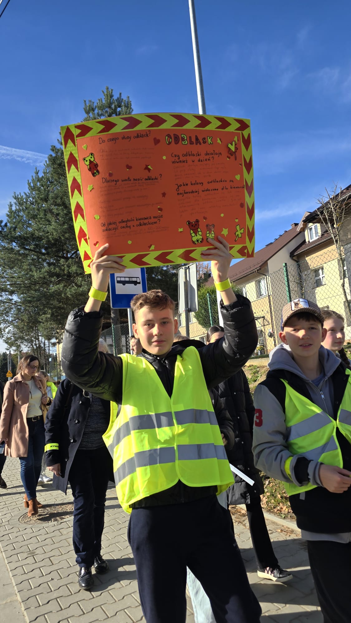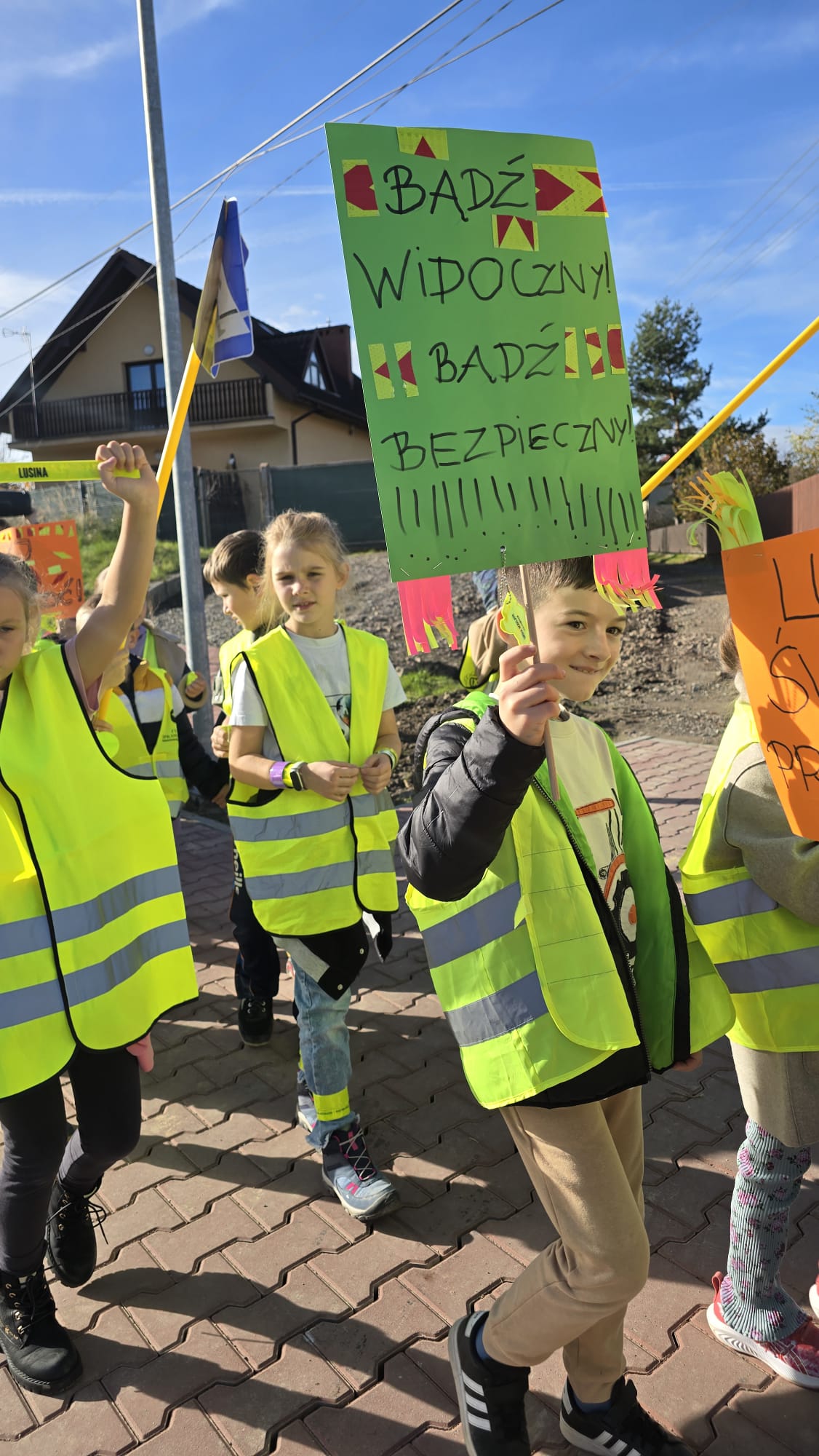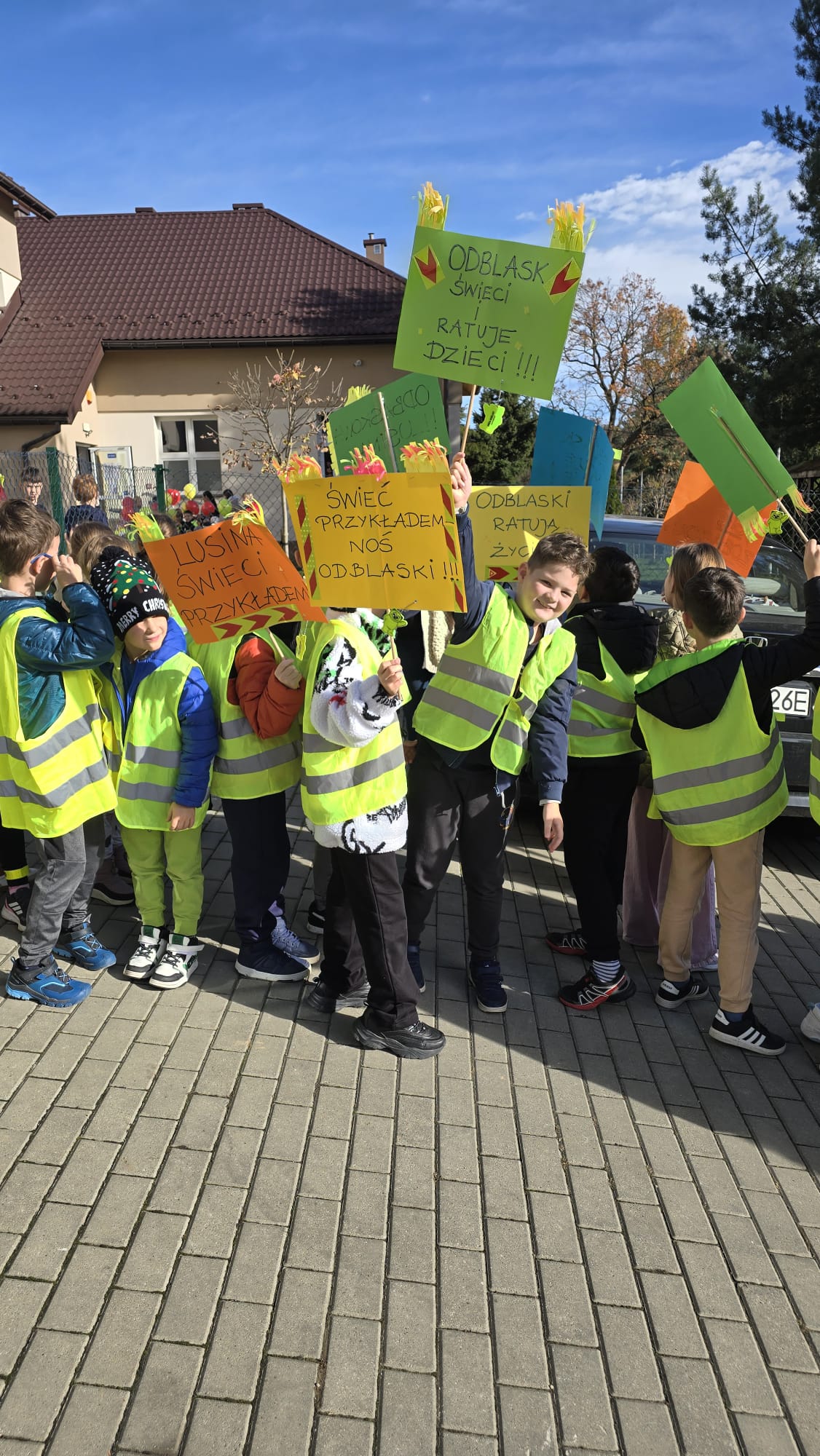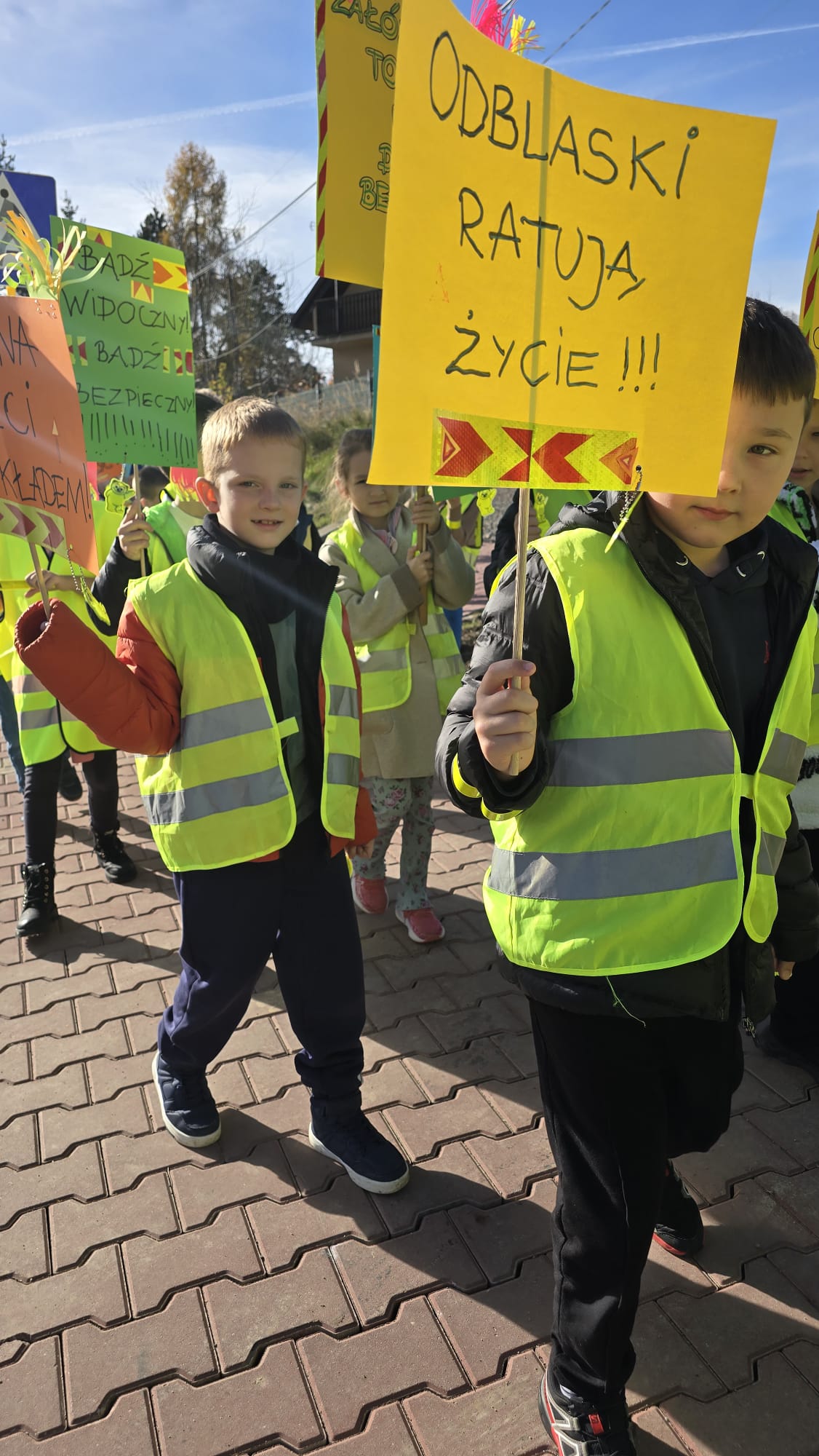 W barwnym pochodzie uczestniczyli przedszkolaki i uczniowie Szkoły, którym towarzyszyła kadra nauczycielska. Uczniowie nieśli transparenty i hasła zachęcające do bycia widocznym na drodze, a cała trasa rozświetlona była przez dziesiątki kamizelek i opasek odblaskowych.