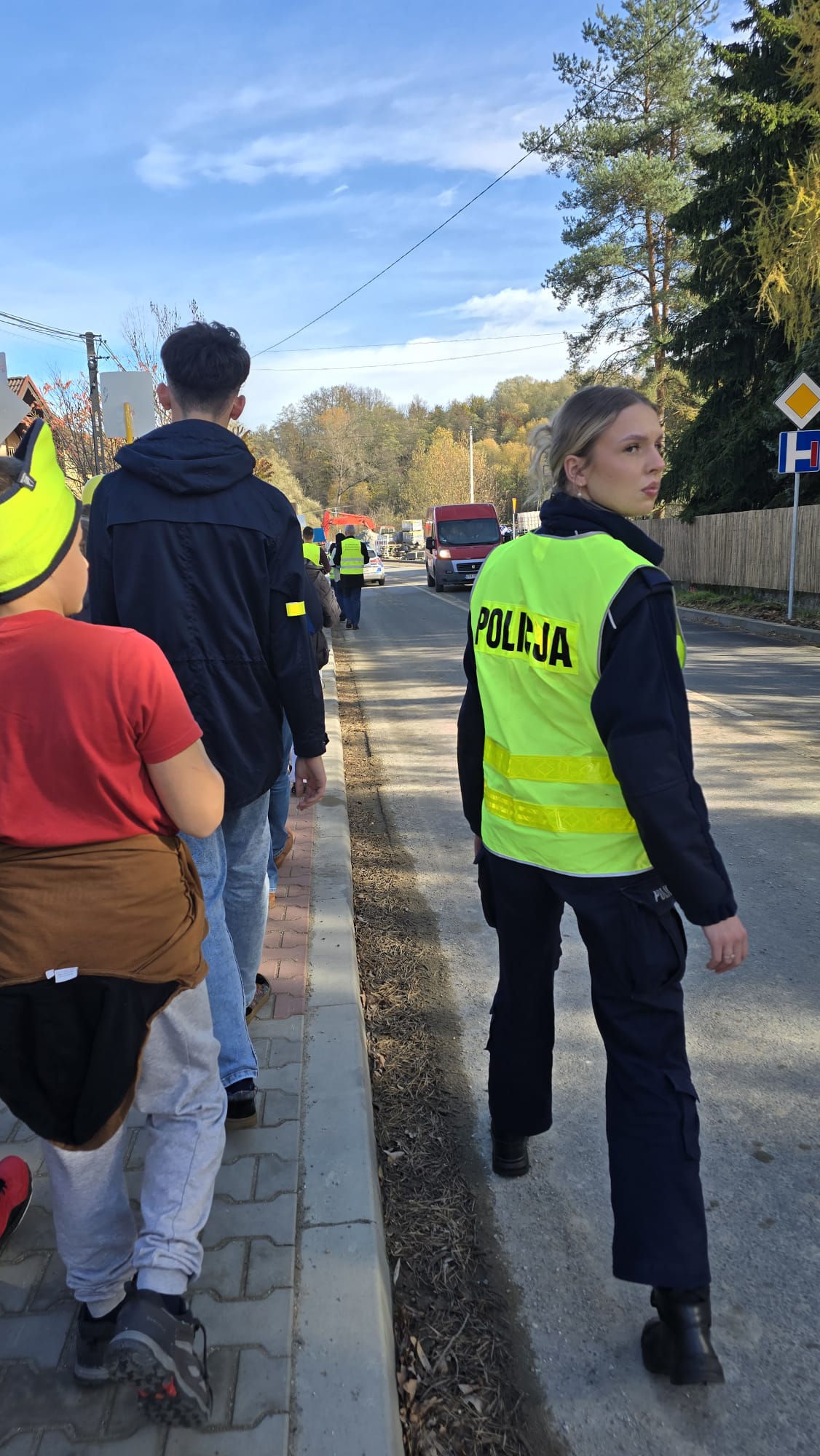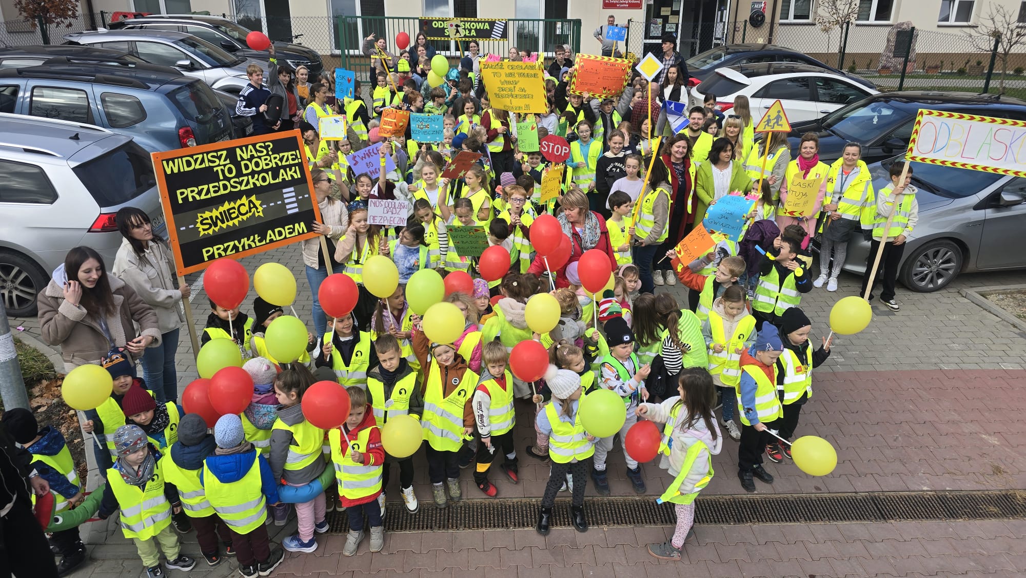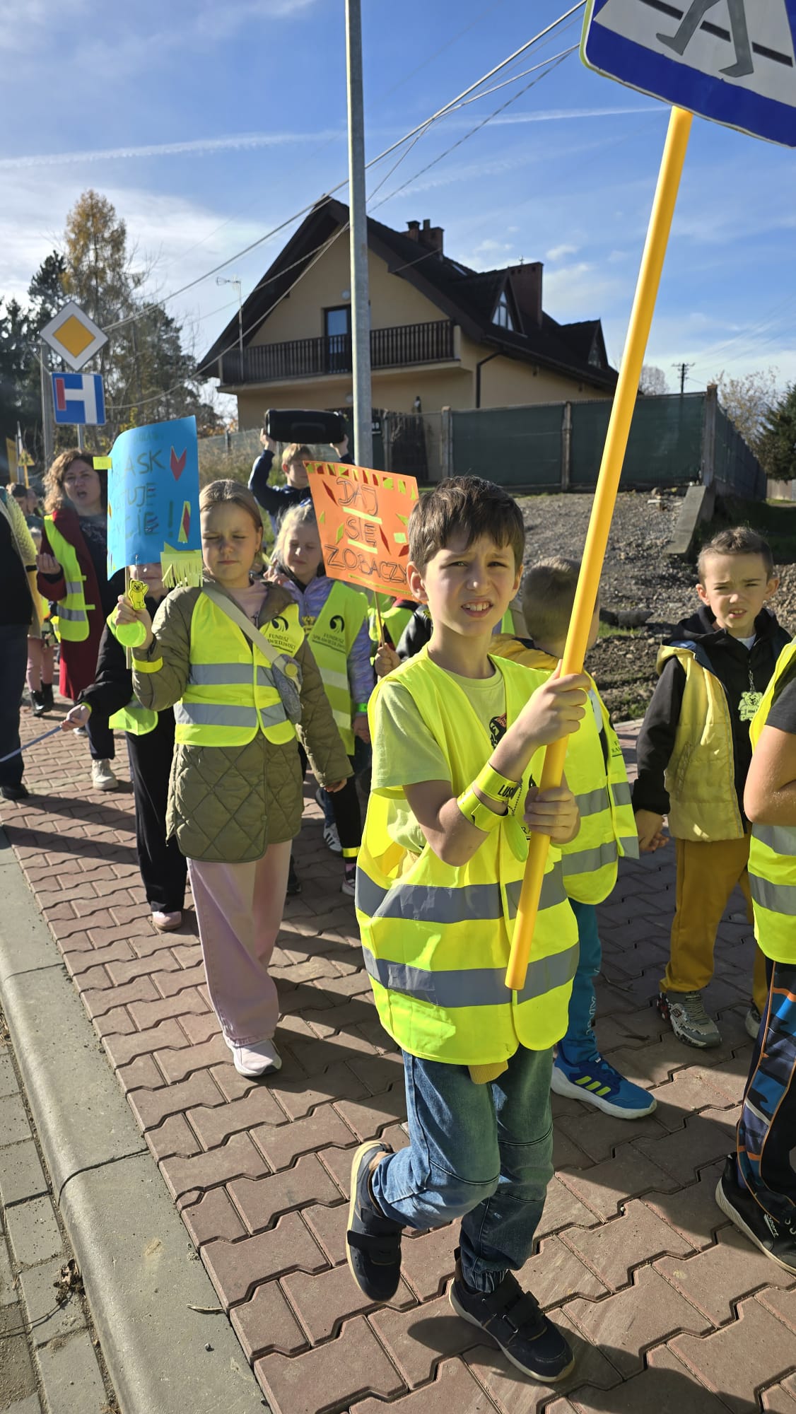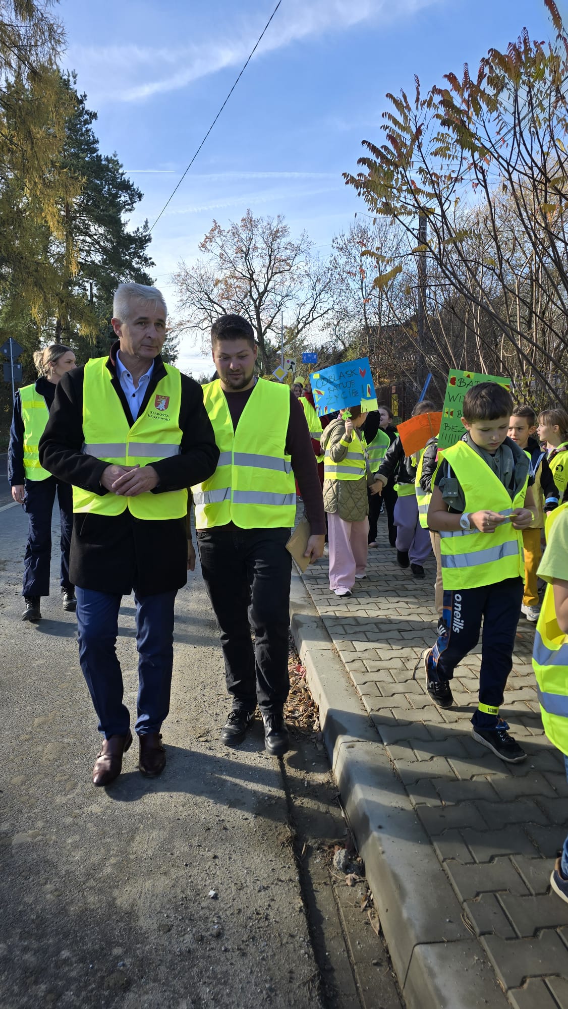 Pochód obejmował trasę spod szkoły przez rondo i z powrotem. Nad bezpieczeństwem całej akcji czuwał patrol policji, który eskortował uczestników i przypominał o zasadach poruszania się po drodze.