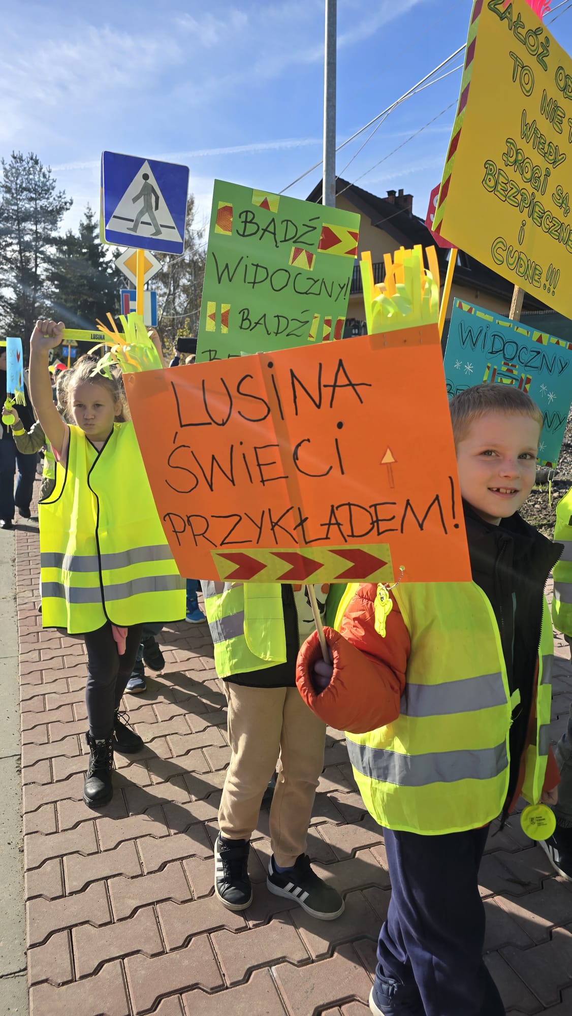 Dziś w Lusinie odbył się wyjątkowy marsz odblaskowy, zorganizowany przez Szkoła Podstawowa im. Świętej Jadwigi Królowej w Lusinie w ramach ogólnopolskiego konkursu „Odblaskowa Szkoła”, w którym placówka bierze udział. Celem wydarzenia było promowanie bezpiecznego zachowania na drodze oraz przypomnienie, jak ważne jest noszenie elementów odblaskowych, zwłaszcza w okresie jesienno-zimowym.