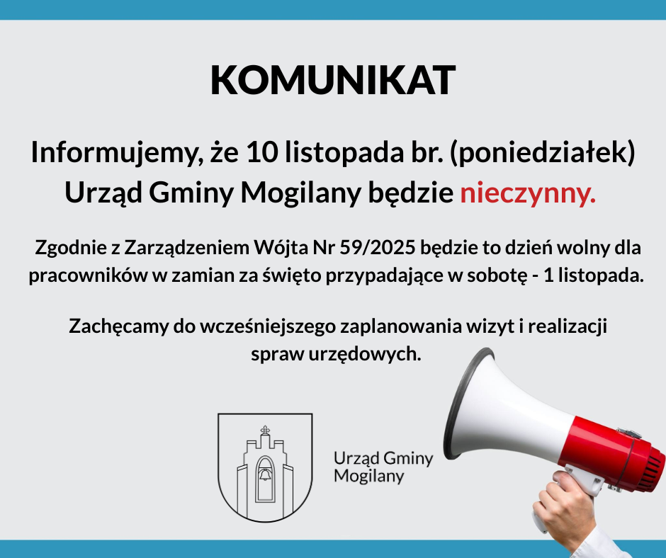 Urząd Gminy nieczynny w dn. 10.11.2025 r.